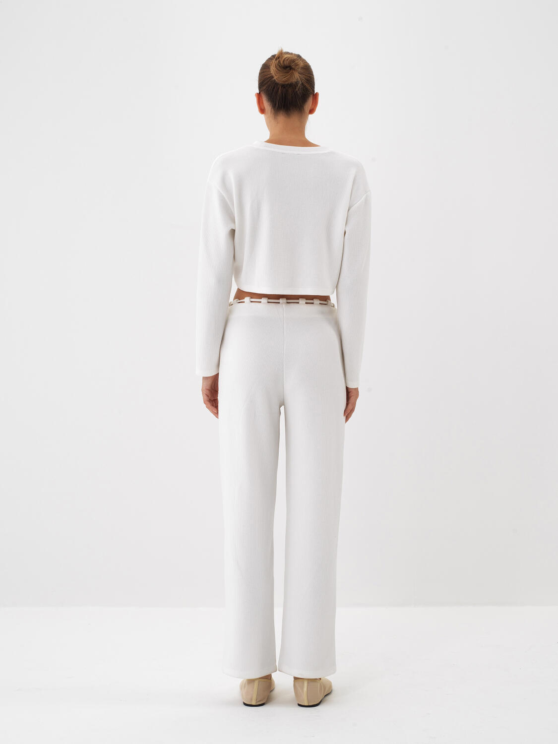 Ekru Pamuk Dokulu Oversize Pantolon - Xint