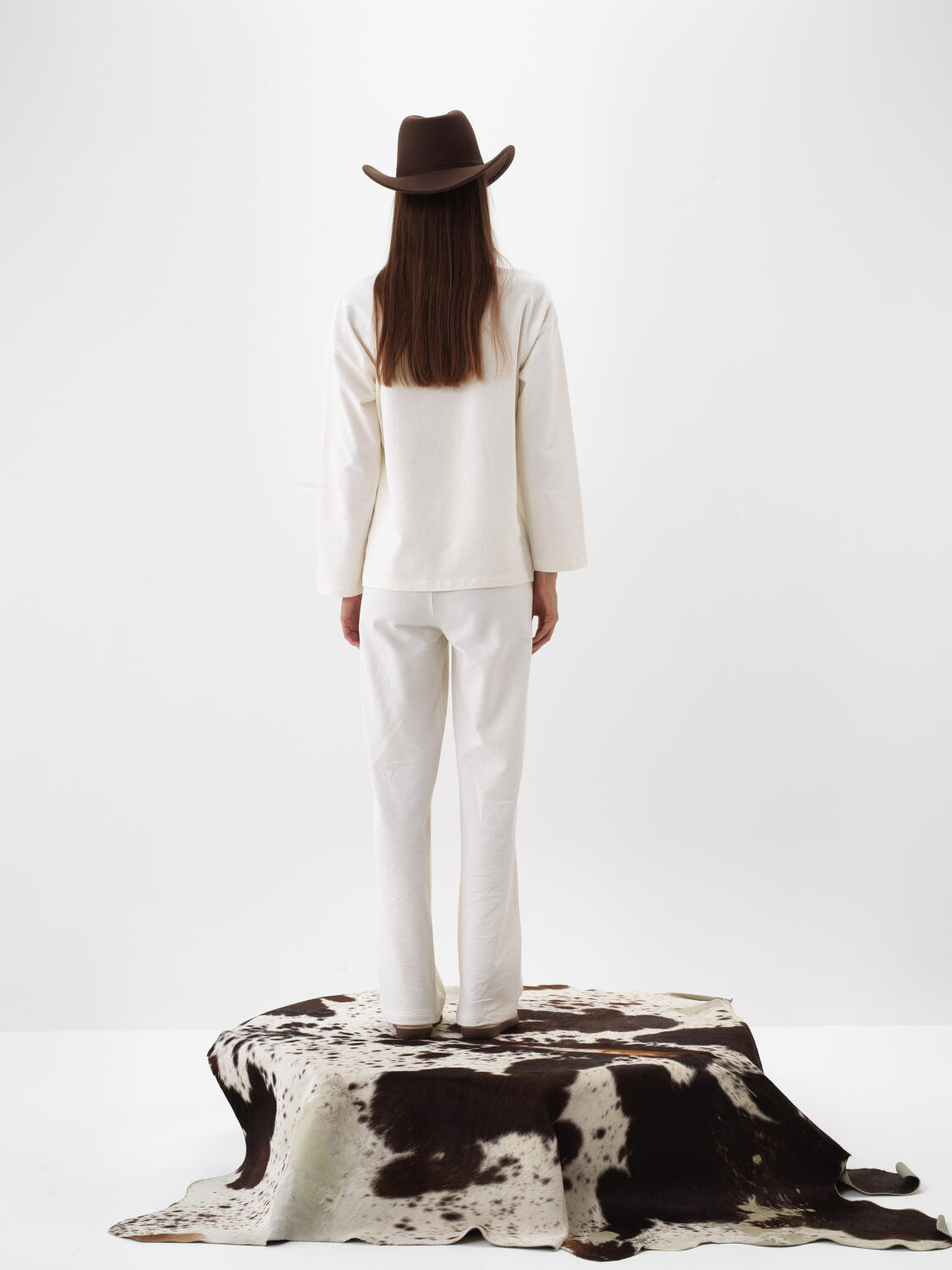 Ekru Pamuk Dokulu Oversize Sweat Pantolon