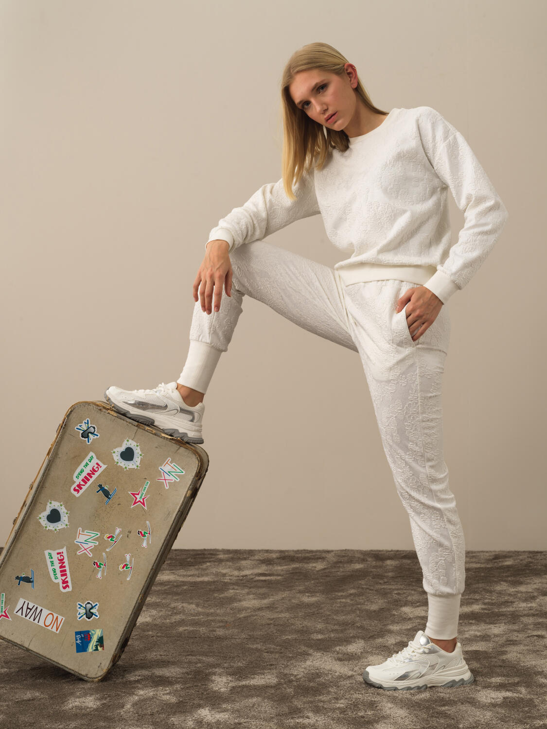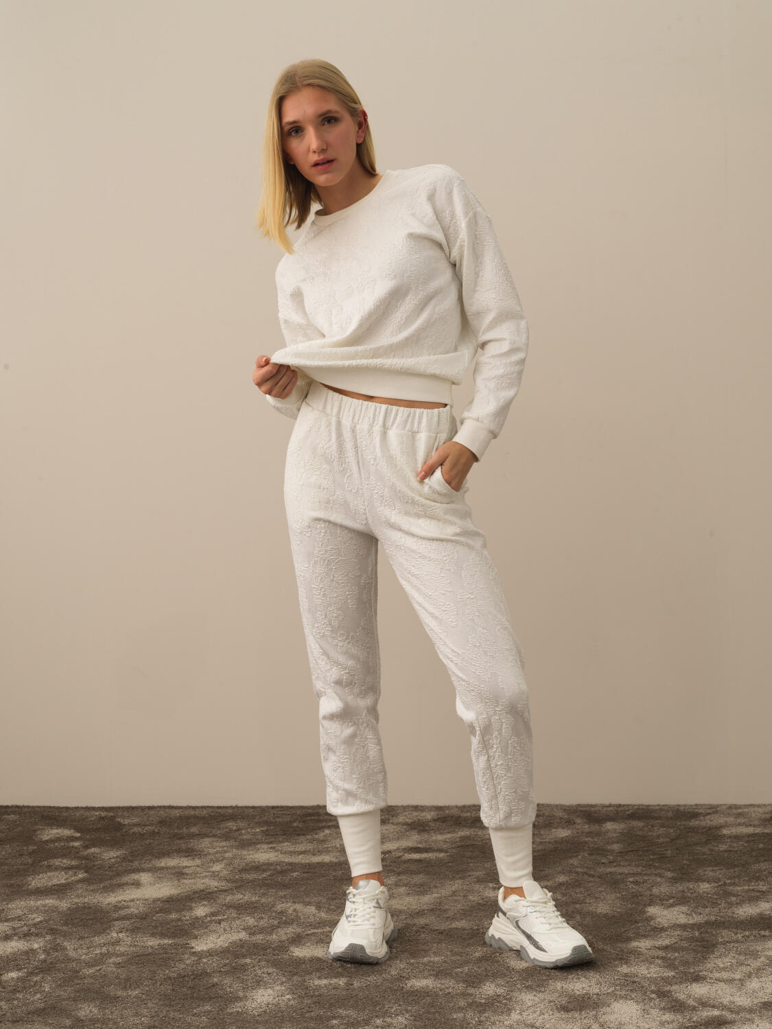 Ekru Modal Dokulu Oversize Sweat Pantolon