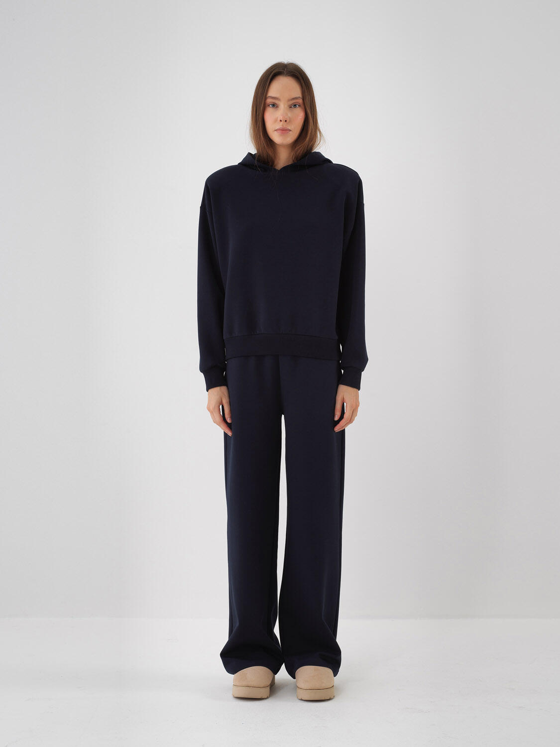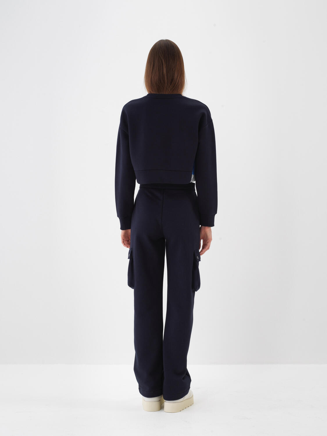 Lacivert Pamuk Dokulu Oversize Sweat Pantolon