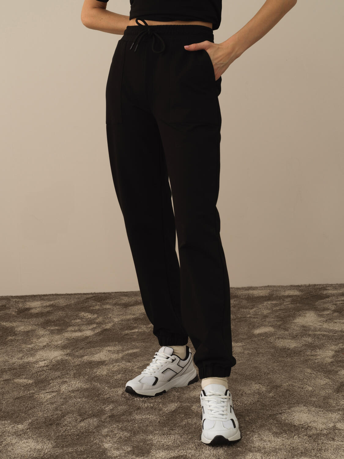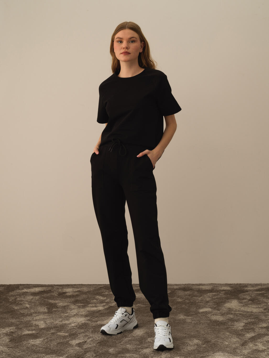Black Modal Textured Regular Fit Sweat Pants - Xint