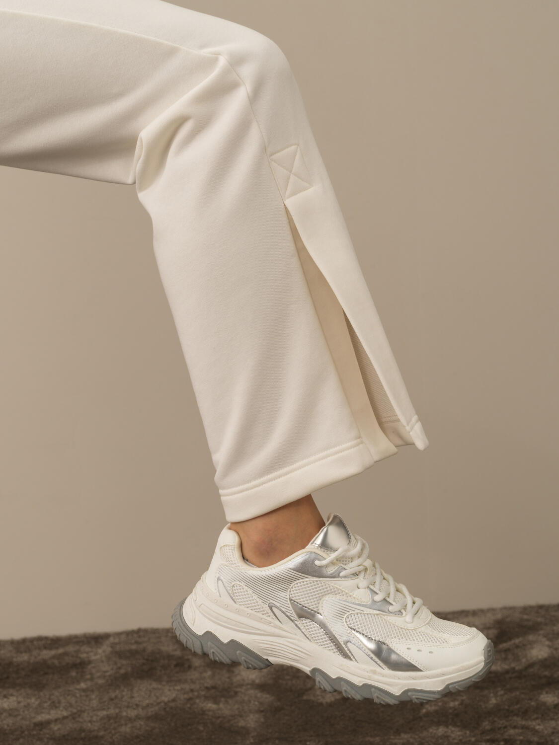 Ecru Cotton Textured Oversize Sweat Pants - Xint