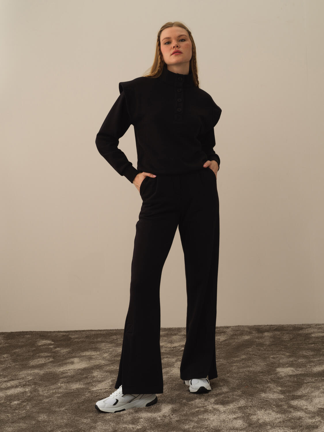 Black Modal Textured Regular Fit Sweat Pants - Xint