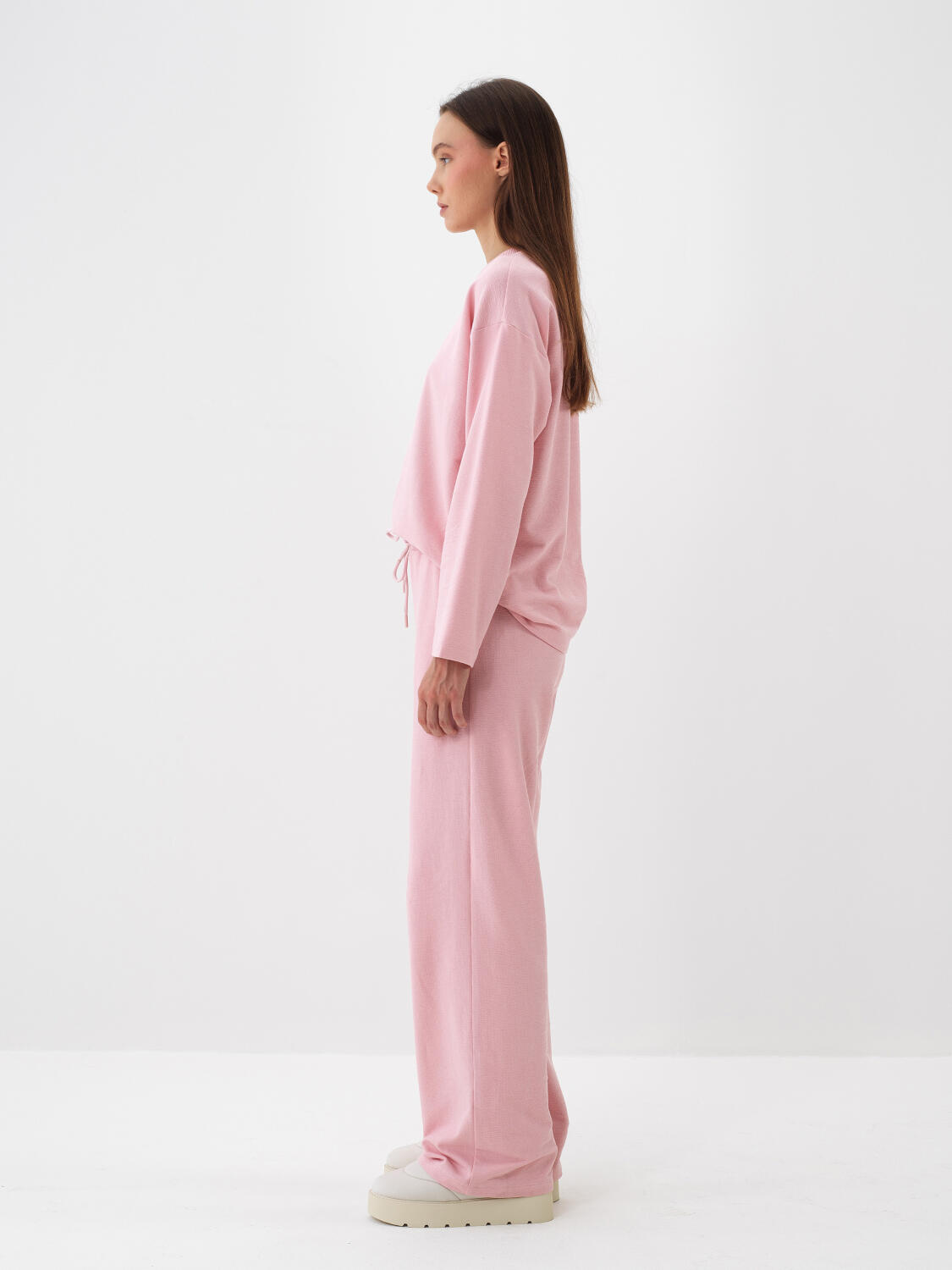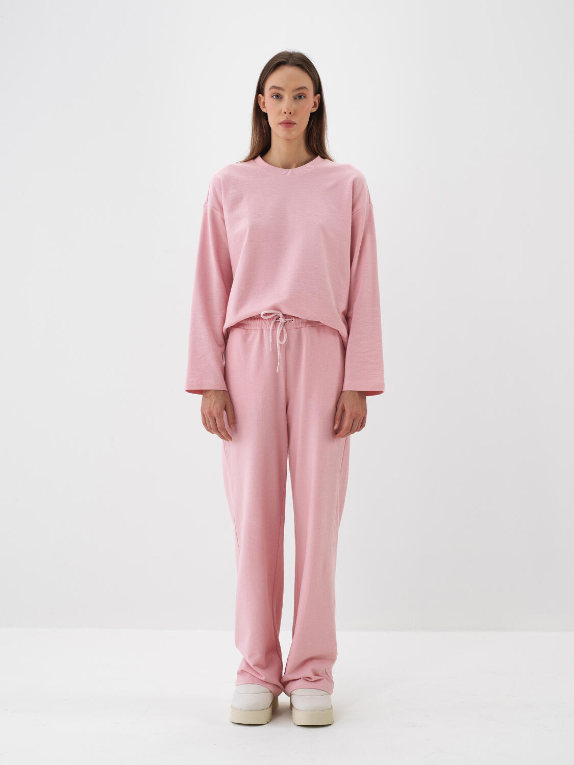 Pembe Pamuk Dokulu Oversize Sweat Pantolon