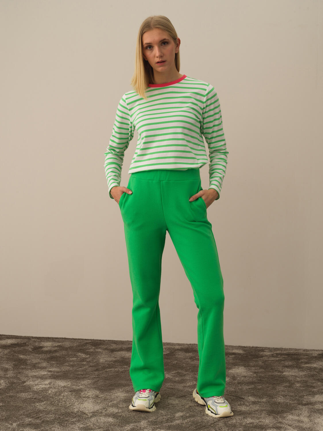 Yeşil Pamuk Dokulu Regular Fit Sweat Pantolon