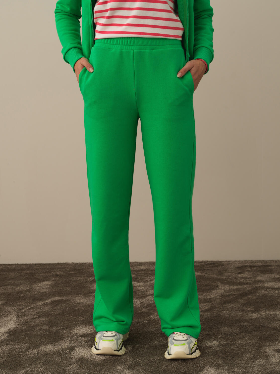 Yeşil Pamuk Dokulu Regular Fit Sweat Pantolon - Xint