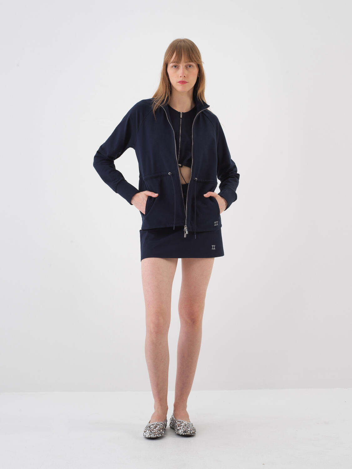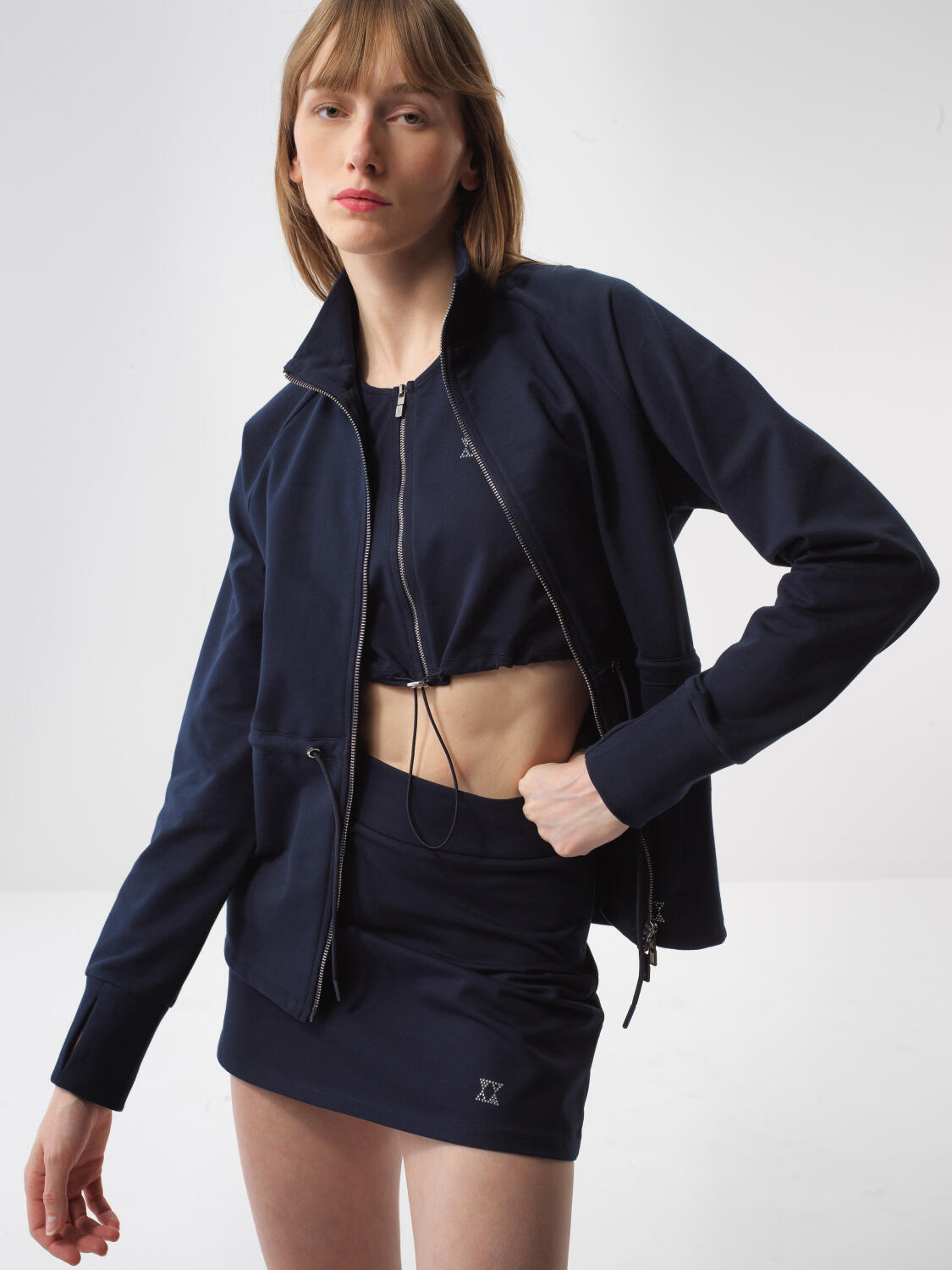 Lacivert Pamuk Dokulu Oversize Sweat Mont