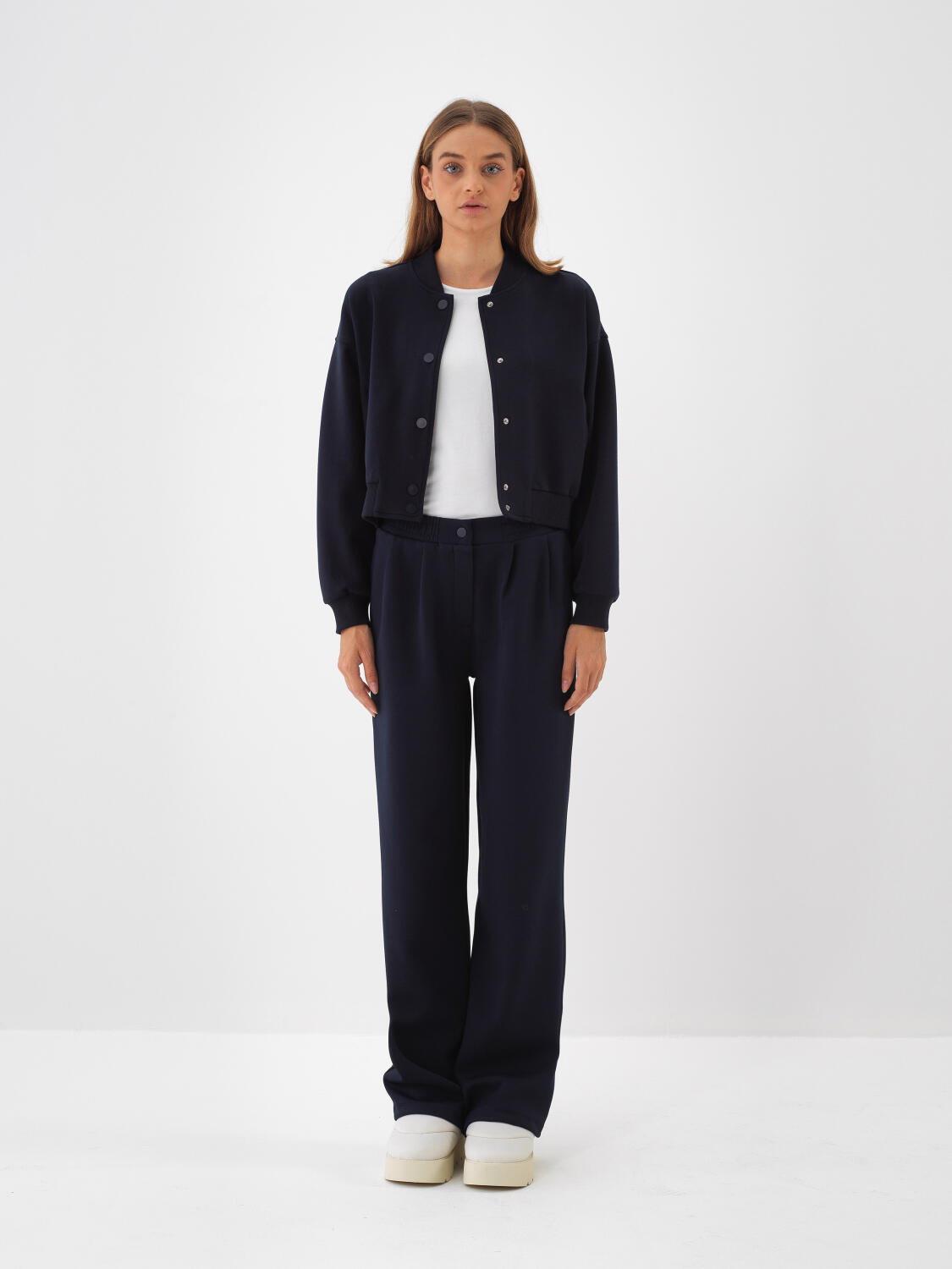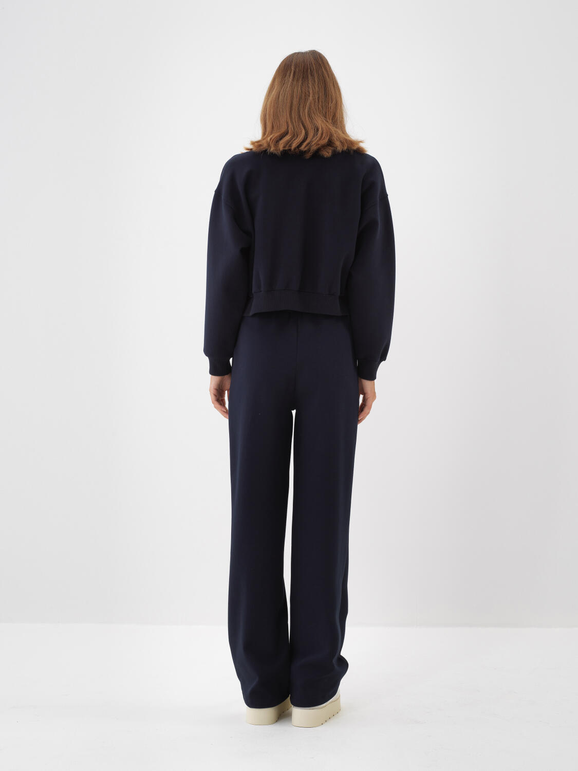 Lacivert Pamuk Dokulu Oversize Sweatmont