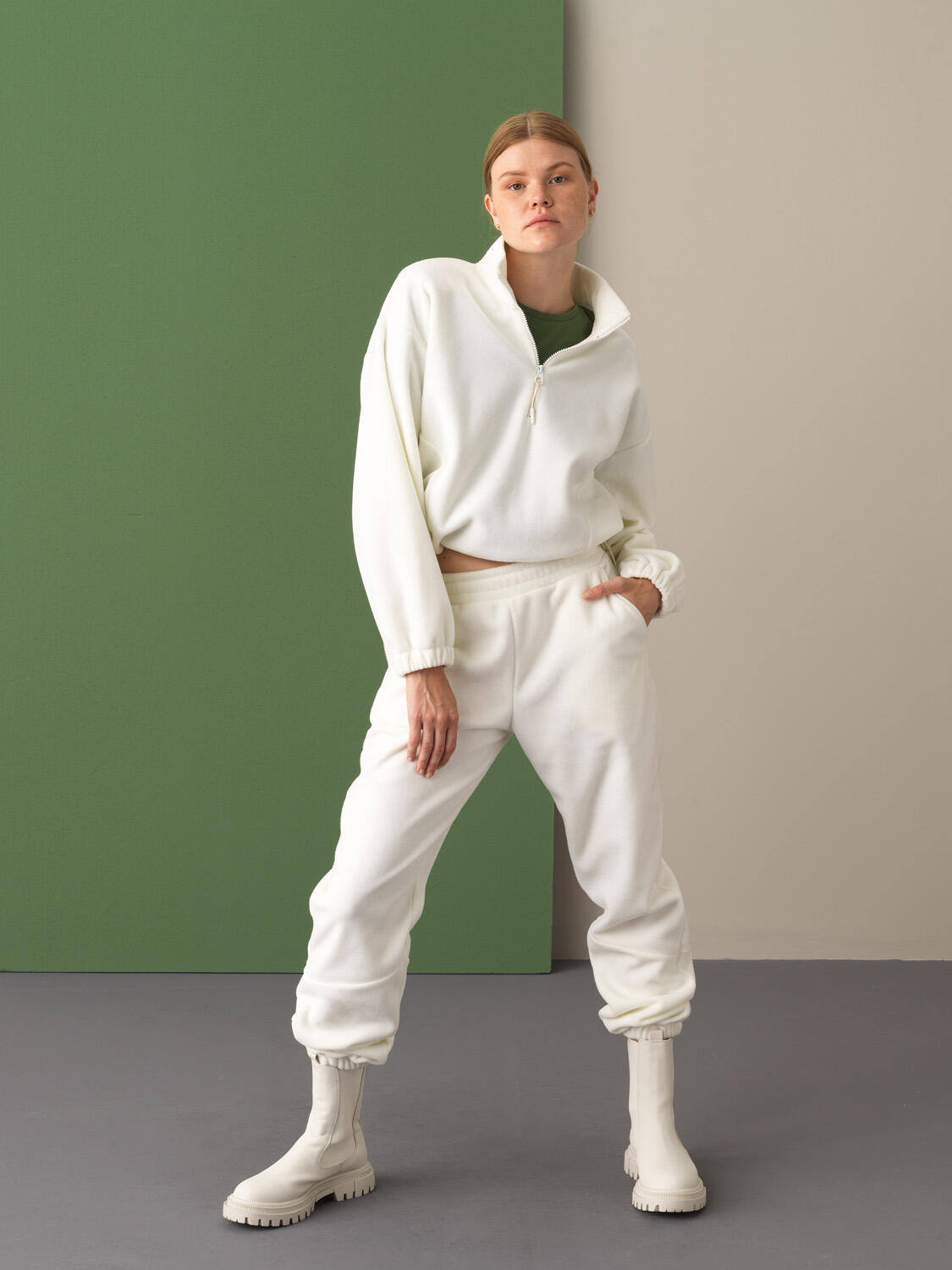 Ecru Modal Textured Oversized Sweat Pants - Xint
