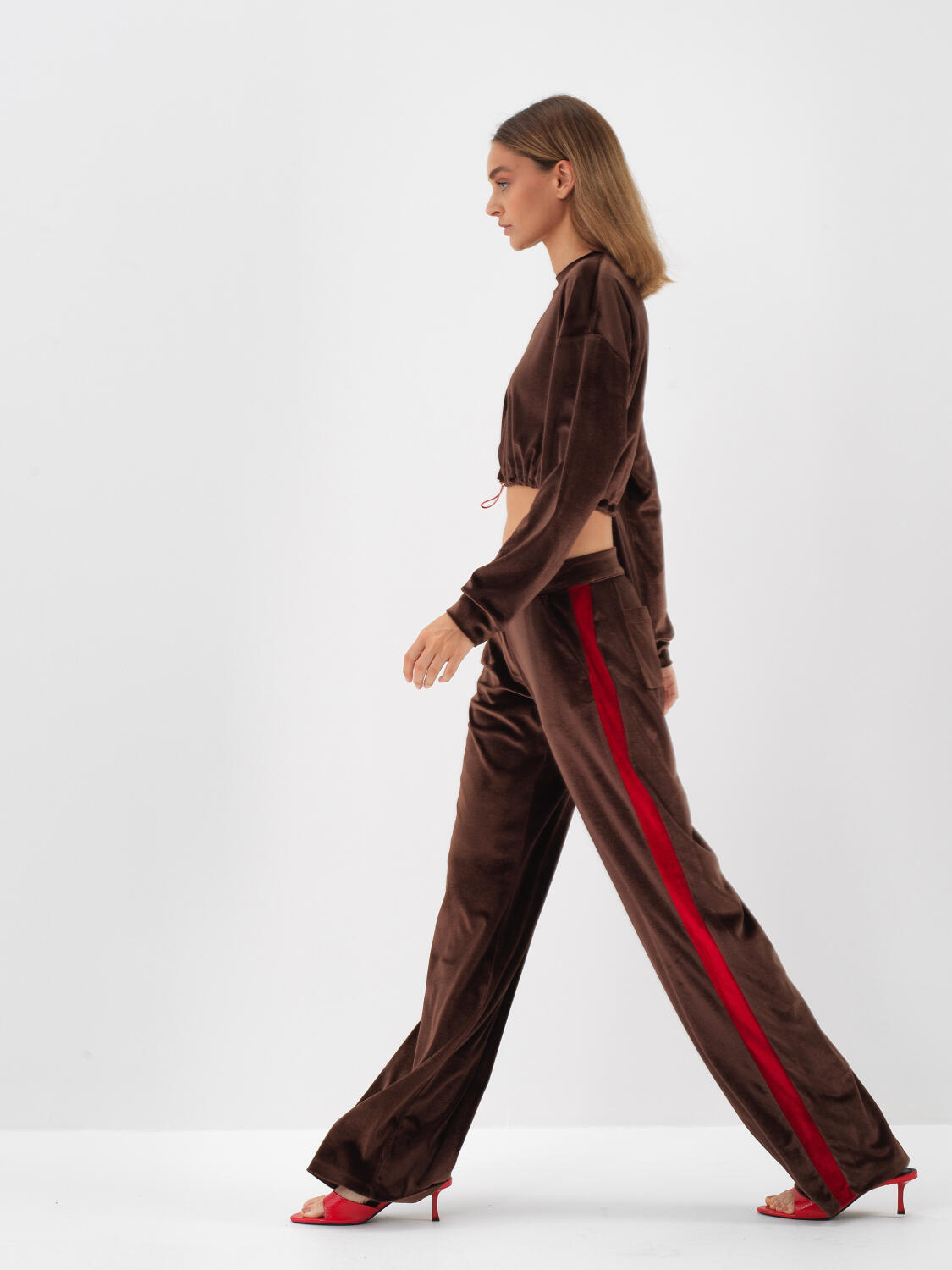 Kahverengi Lüks Dokulu Soft Kadife Oversize Sweatshirt