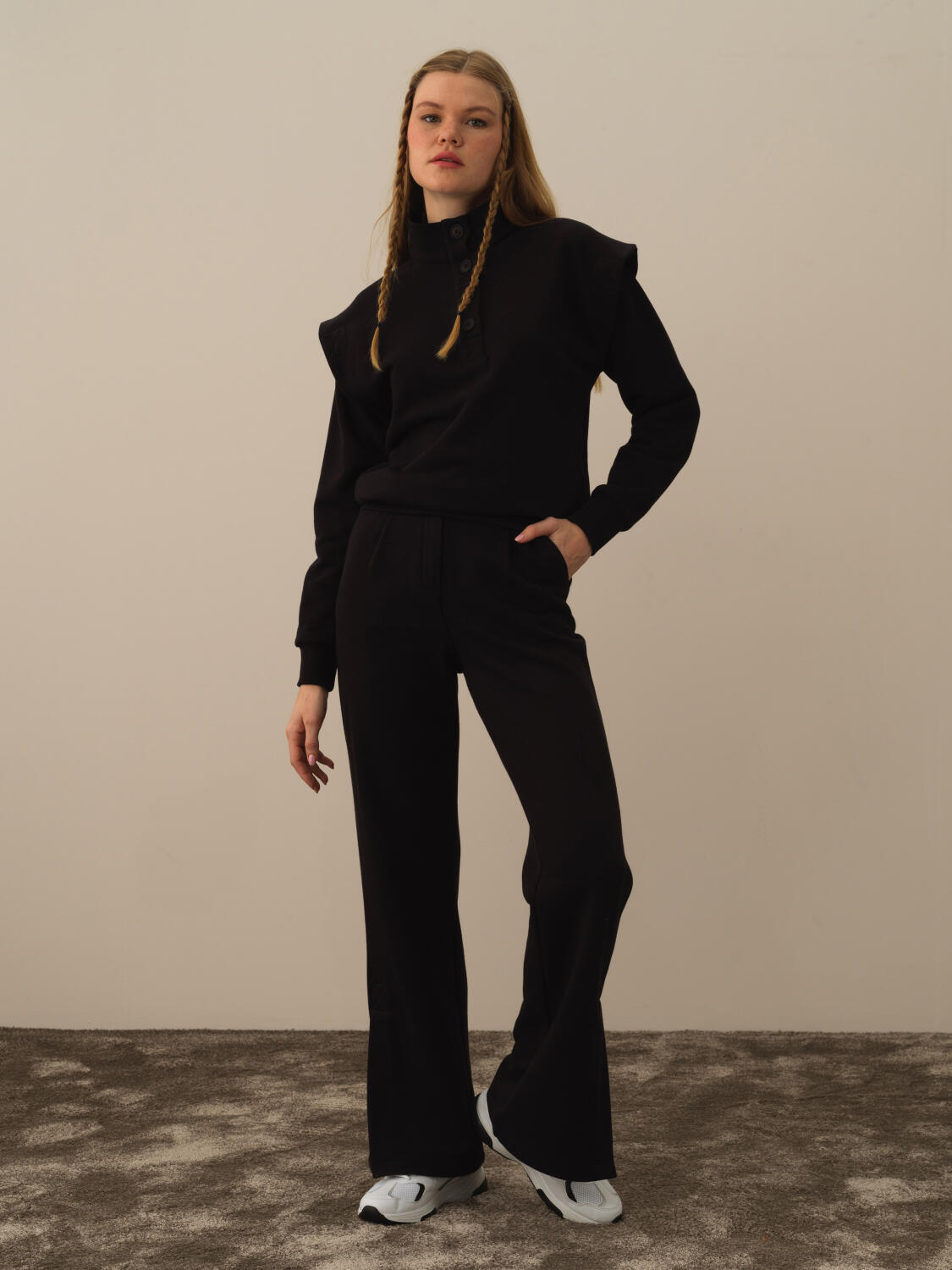 Siyah Pamuk Dokulu Regular Fit Sweat Pantolon - Xint