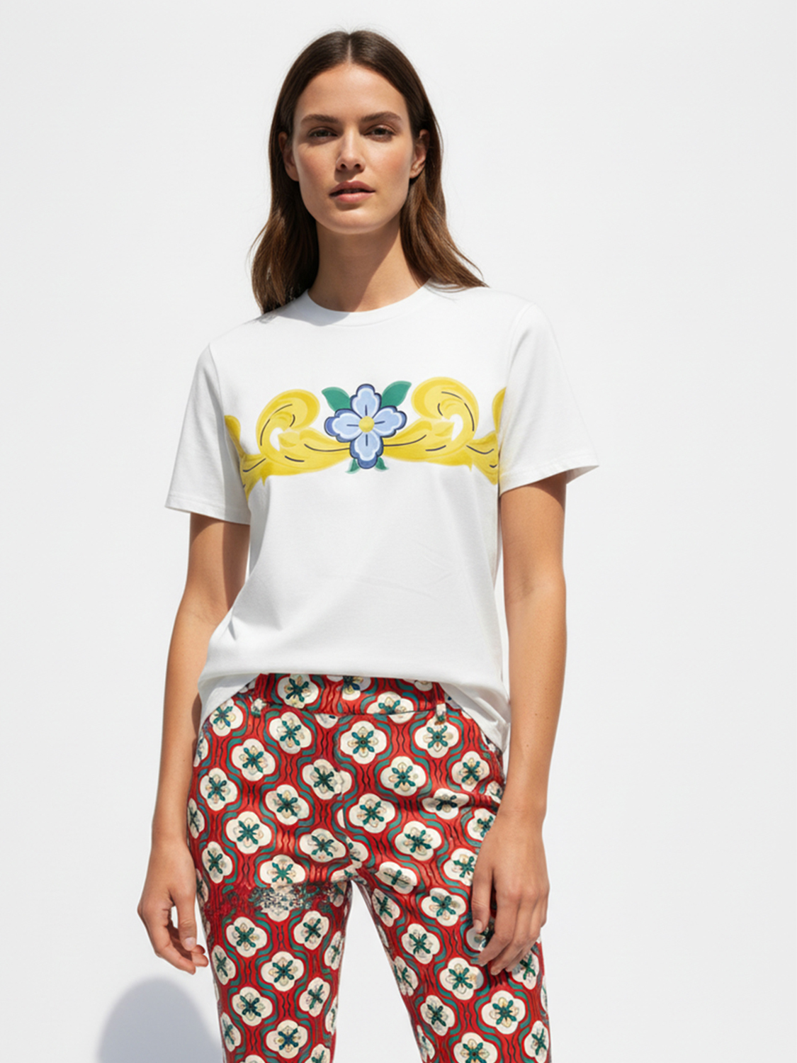 Beyaz Pamuk Dokulu Regular Fit Tişört