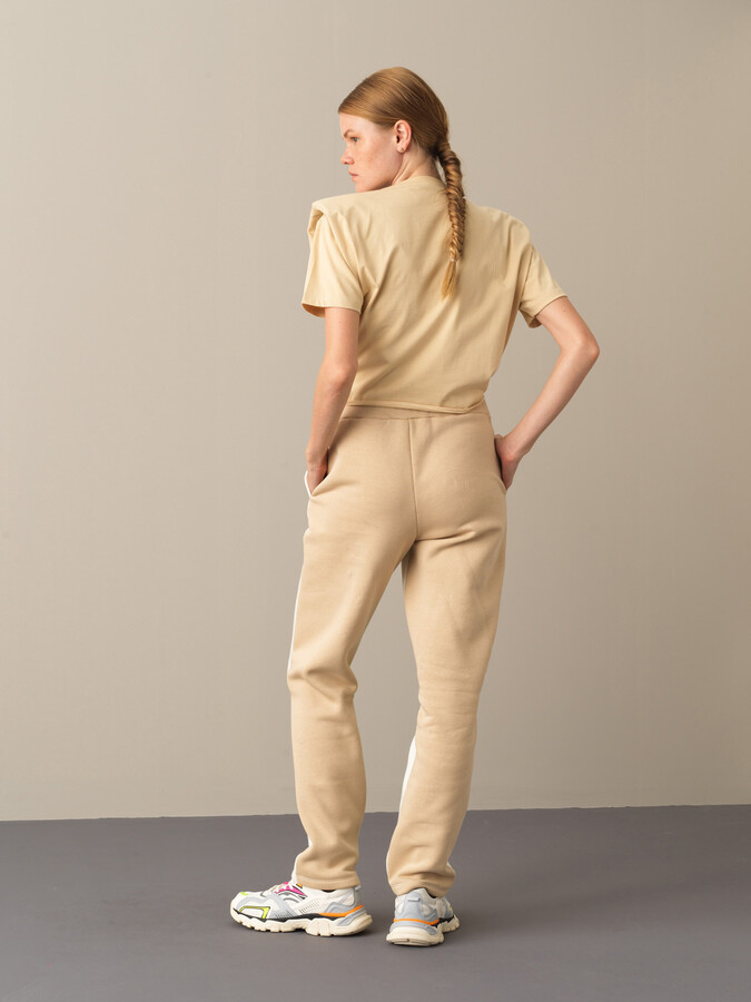 Ekru Pamuk Dokulu Oversize Tişört - Xint