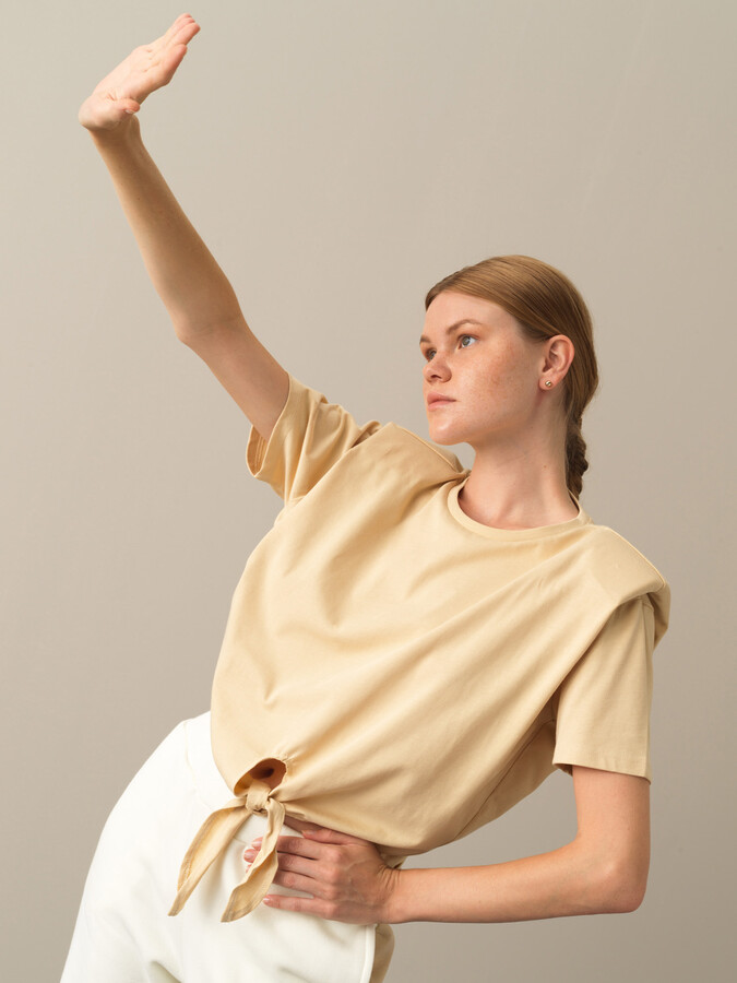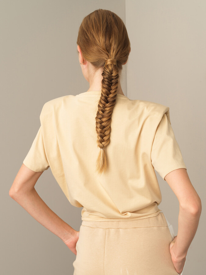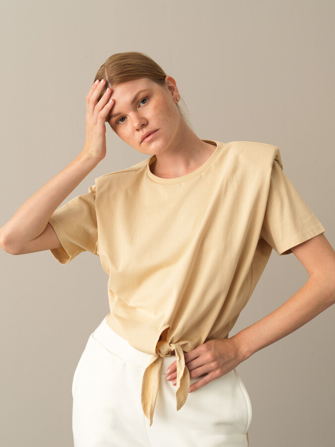 Ekru Pamuk Dokulu Oversize Tişört