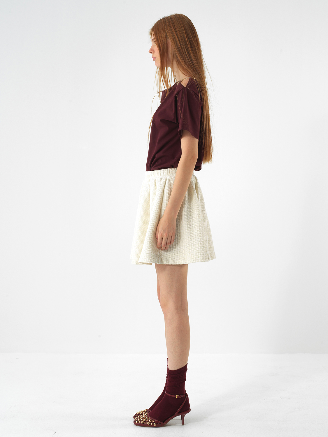 Ekru Işıltılı Lurex Detaylı Oversize Etek