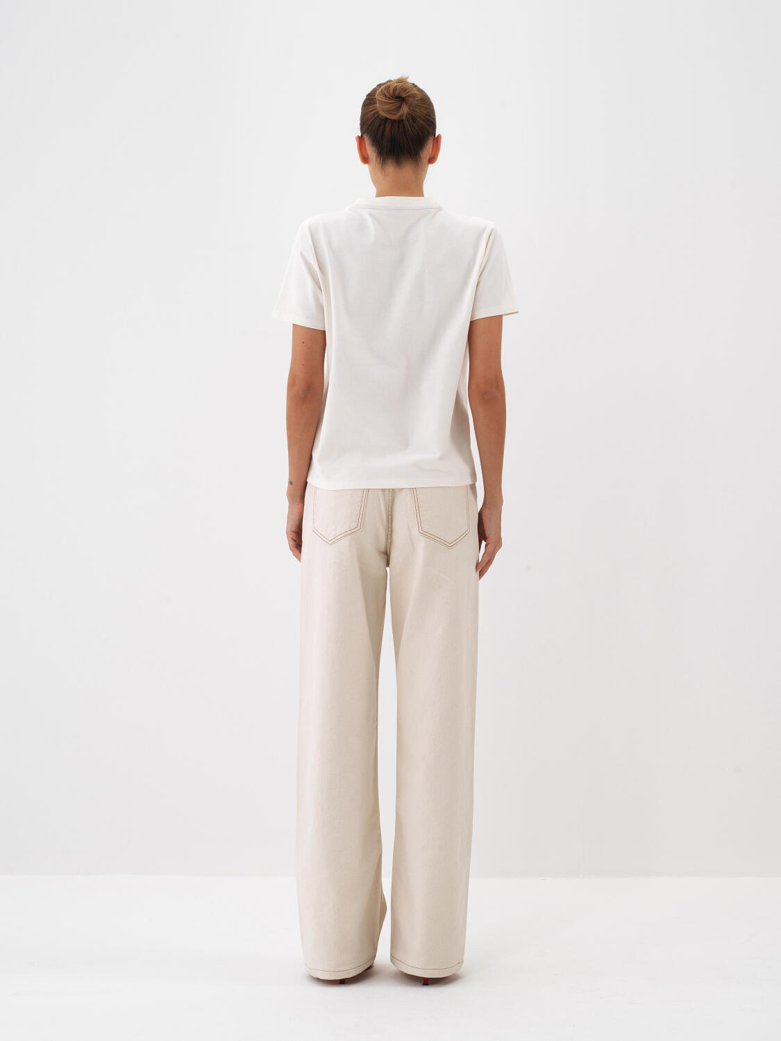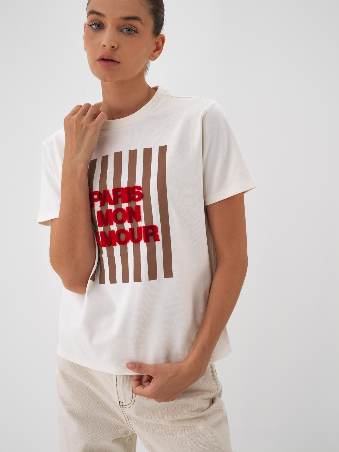 Ekru Pamuk Dokulu Regular Fit Tişört