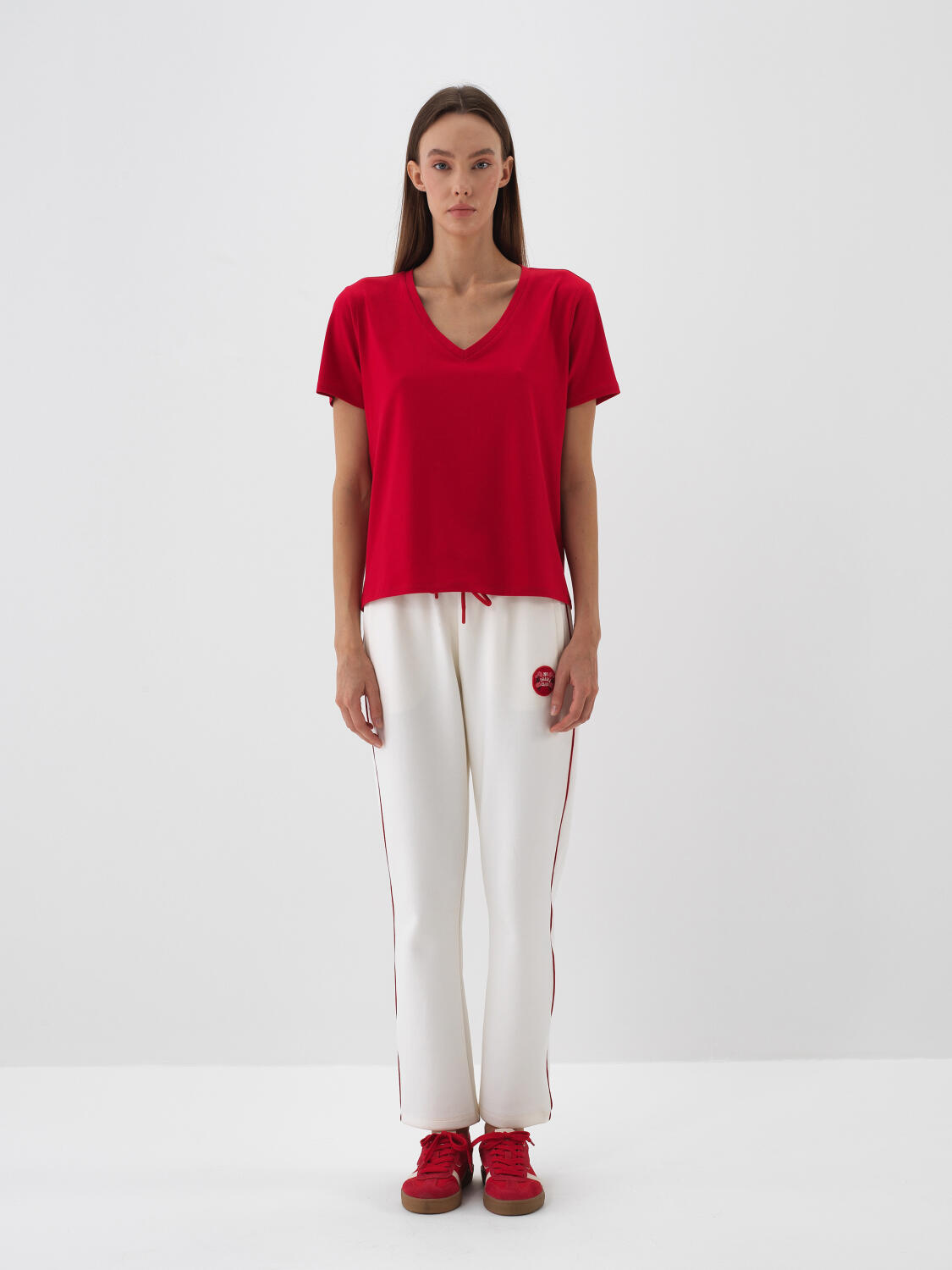 Kırmızı Modal Dokulu Regular Fit Tişört