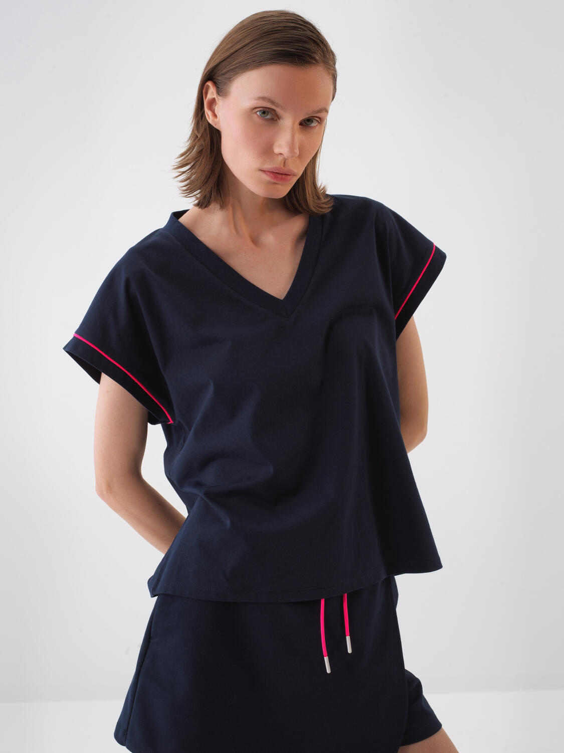 Lacivert Pamuk Dokulu Oversize Tişört