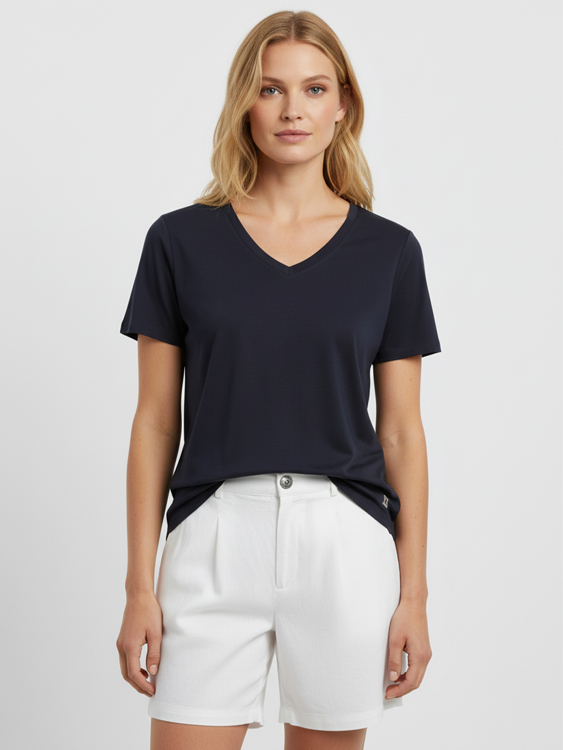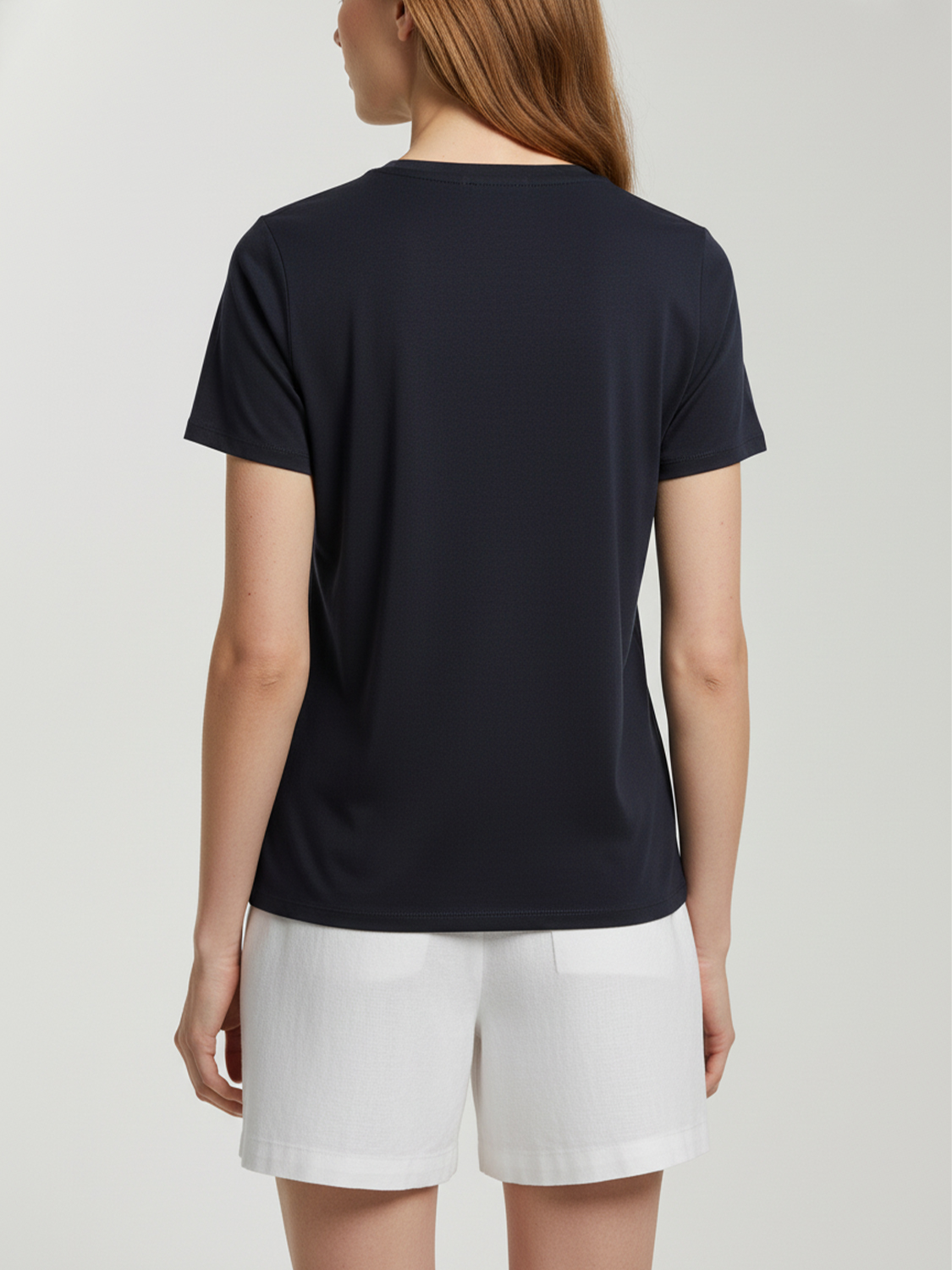 Lacivert Pamuk Dokulu Regular Fit Tişört