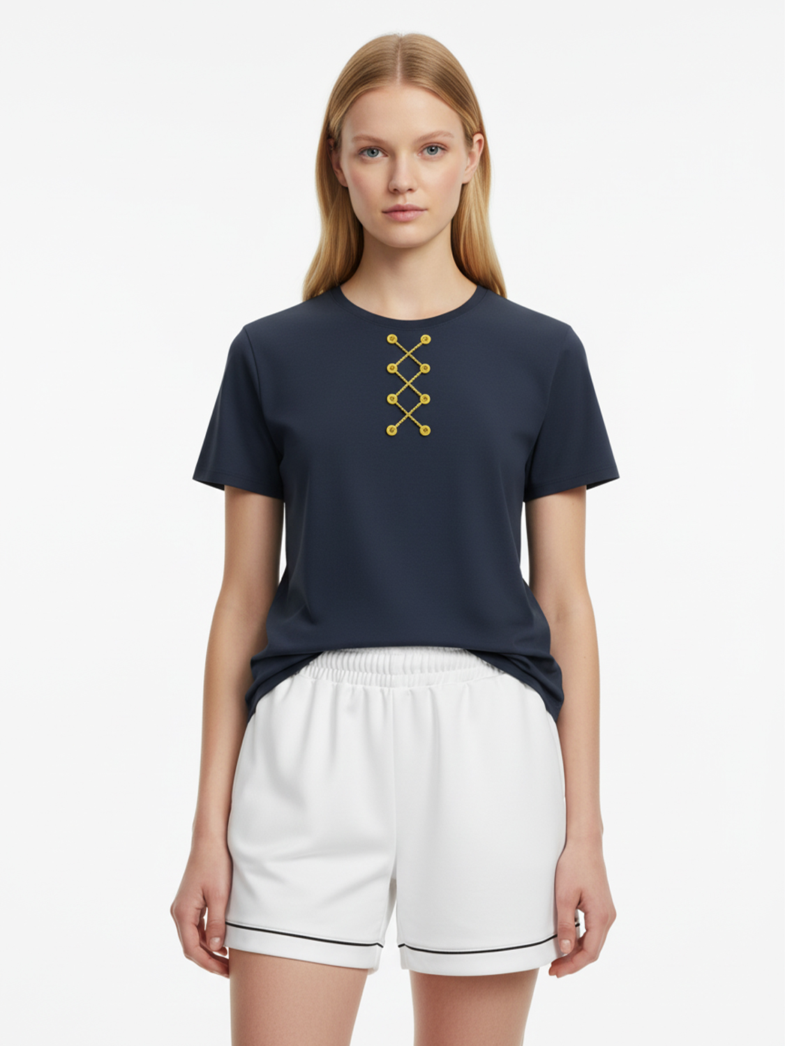 Lacivert Pamuk Dokulu Regular Fit Tişört