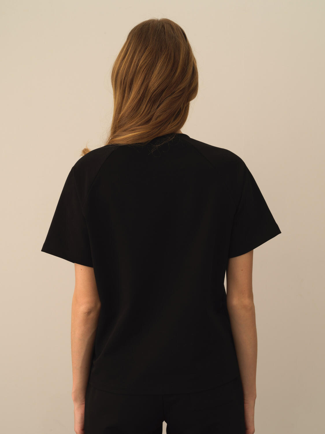 Siyah Pamuk Dokulu Oversize Tişört - Xint