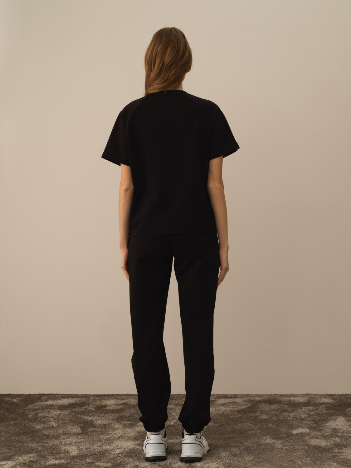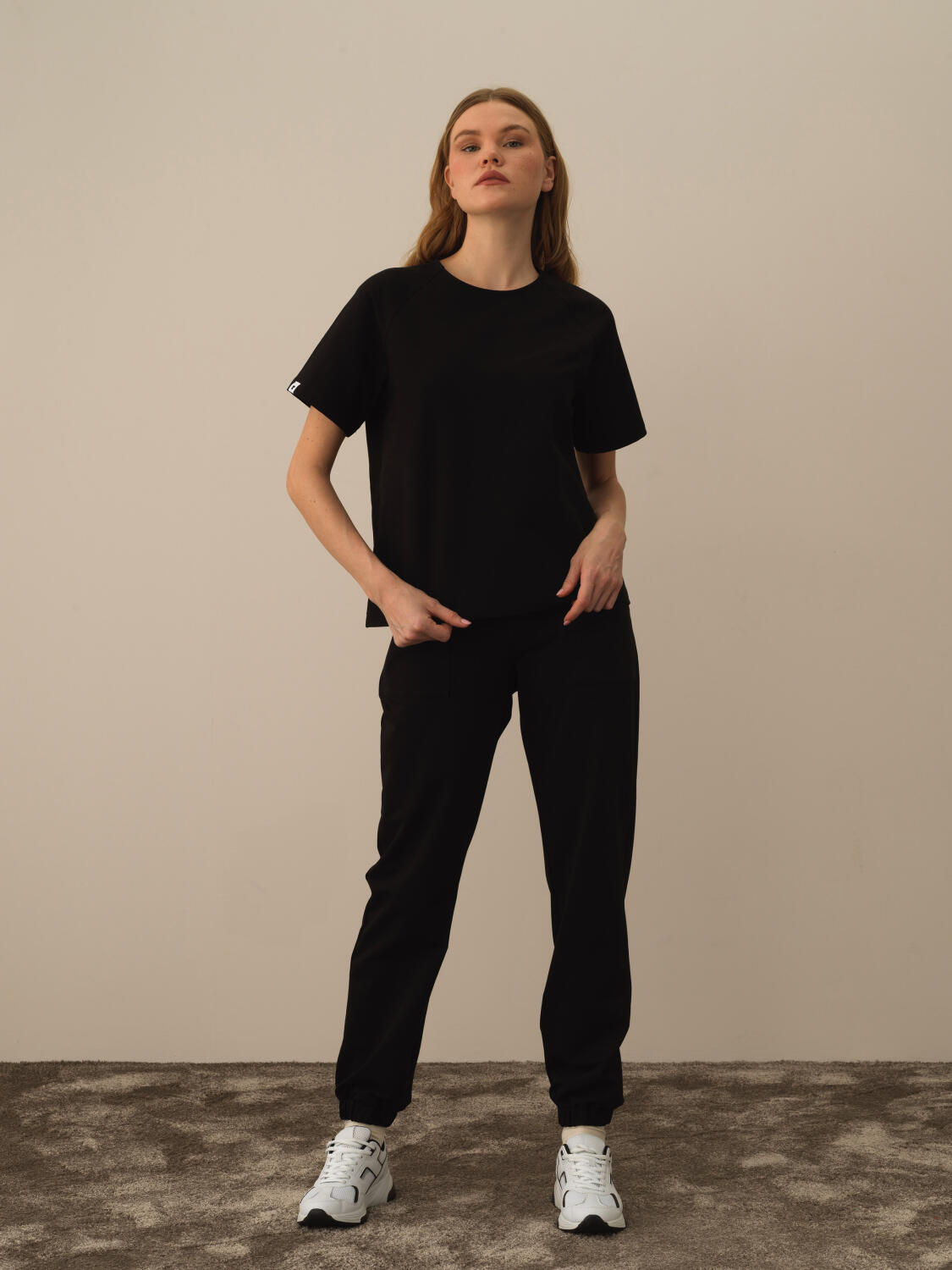Siyah Pamuk Dokulu Regular Fit Sweat Pantolon - Xint
