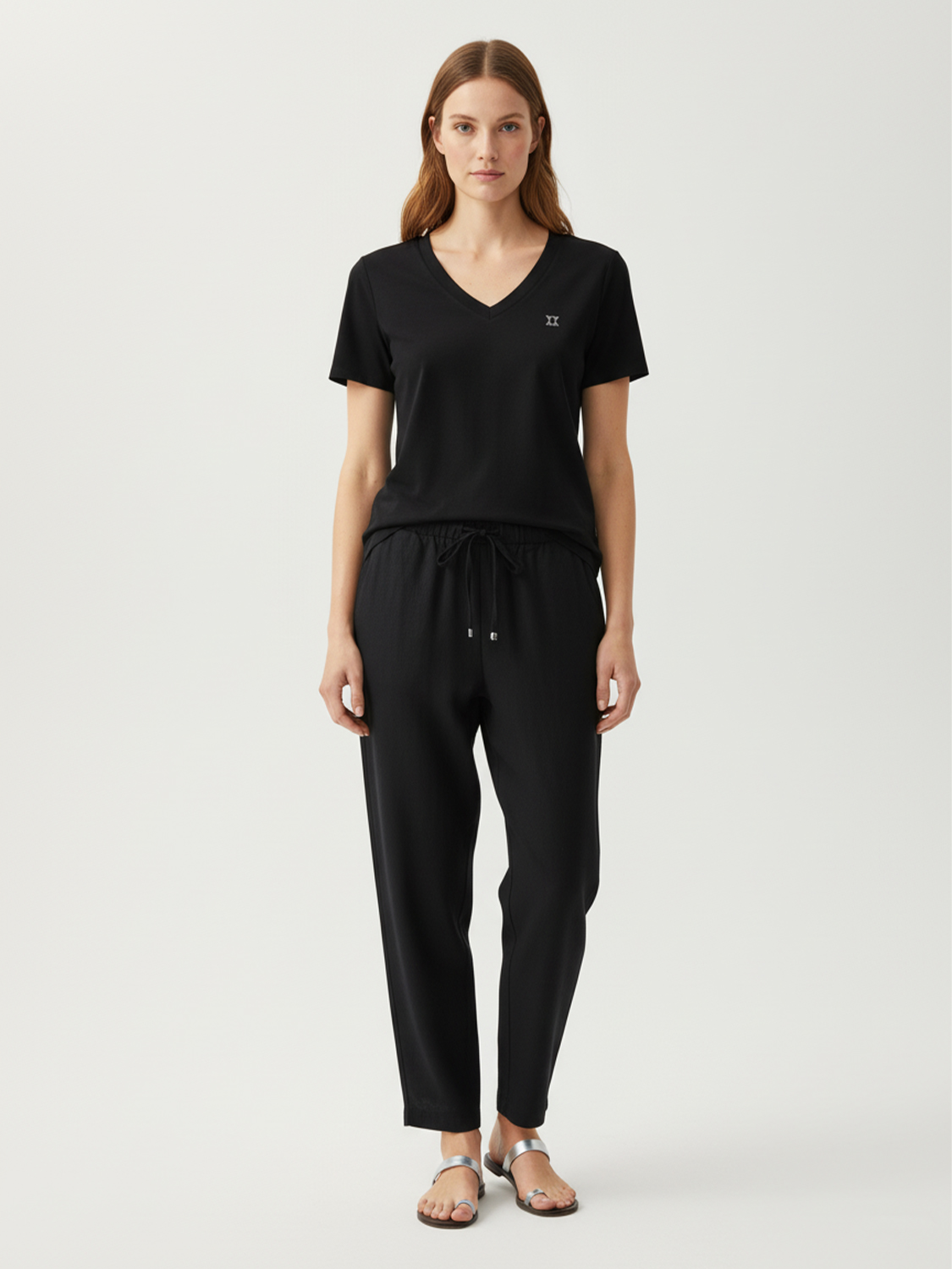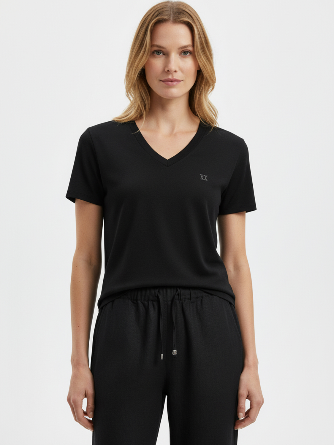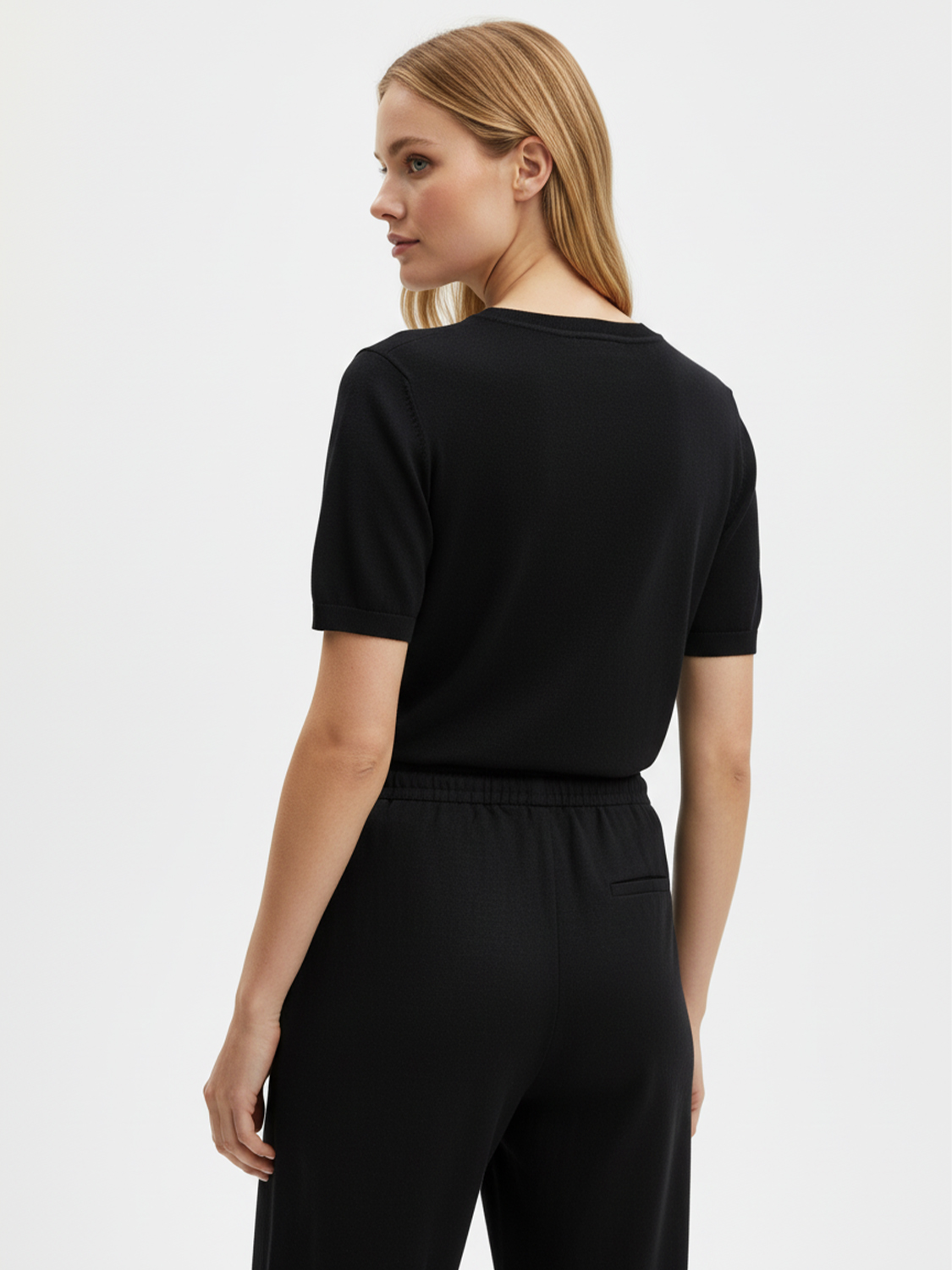 Siyah Pamuk Dokulu Regular Fit Tişört