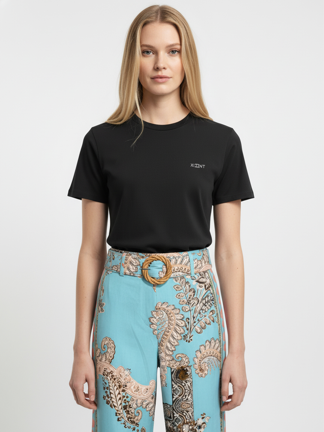 Siyah Pamuk Dokulu Regular Fit Tişört