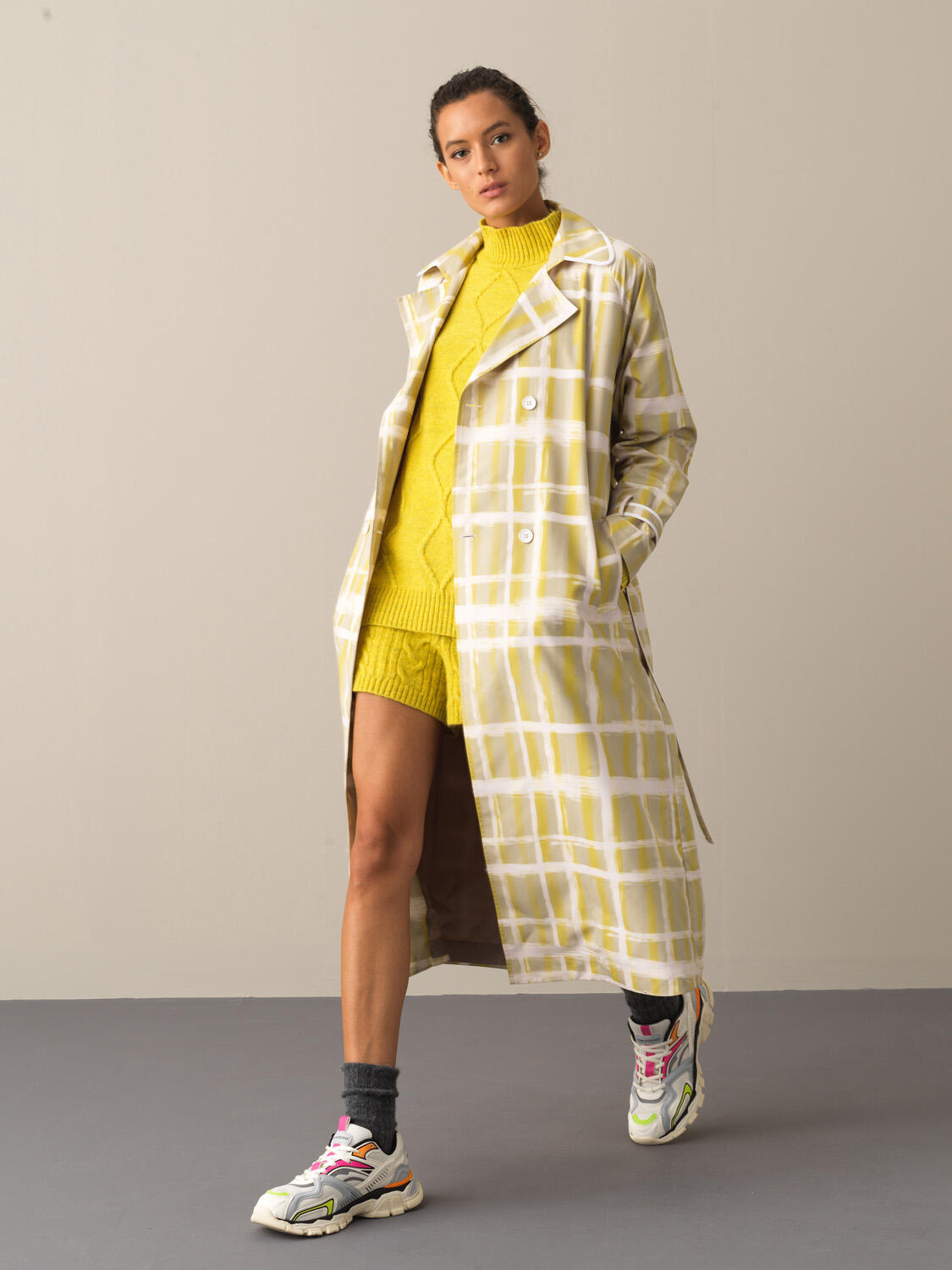 Waist-Tied Regular Fit Patterned Trench Coat - Xint