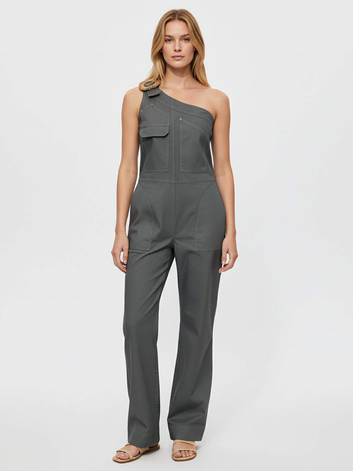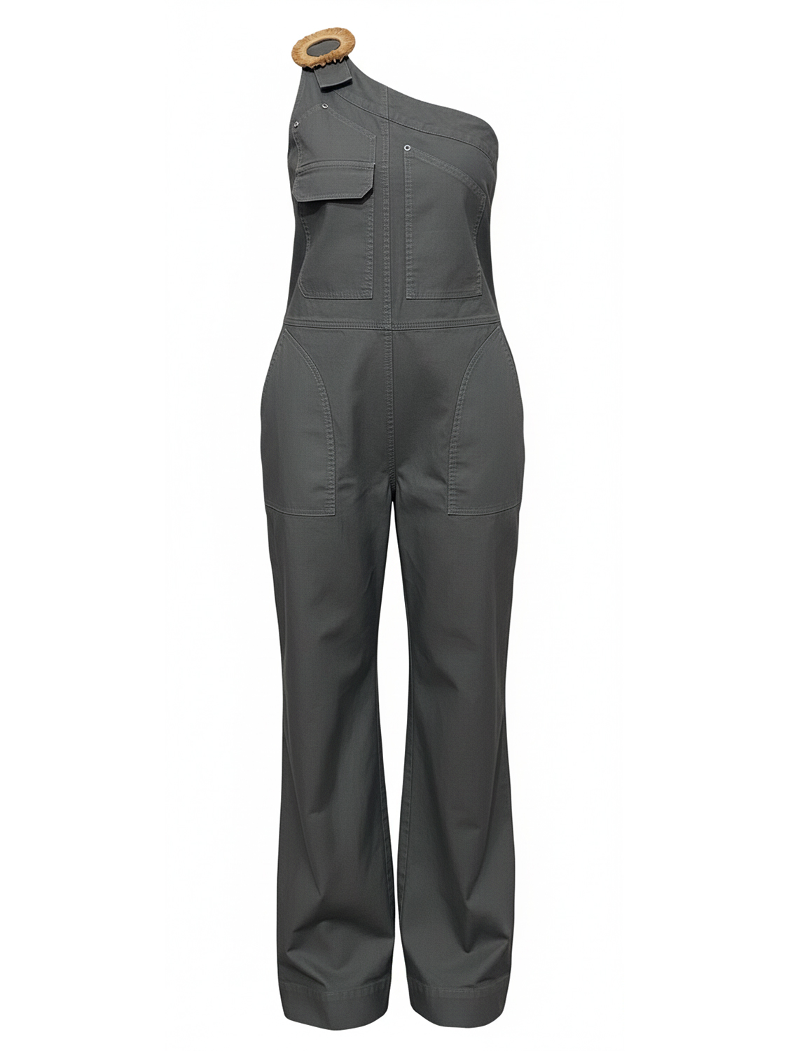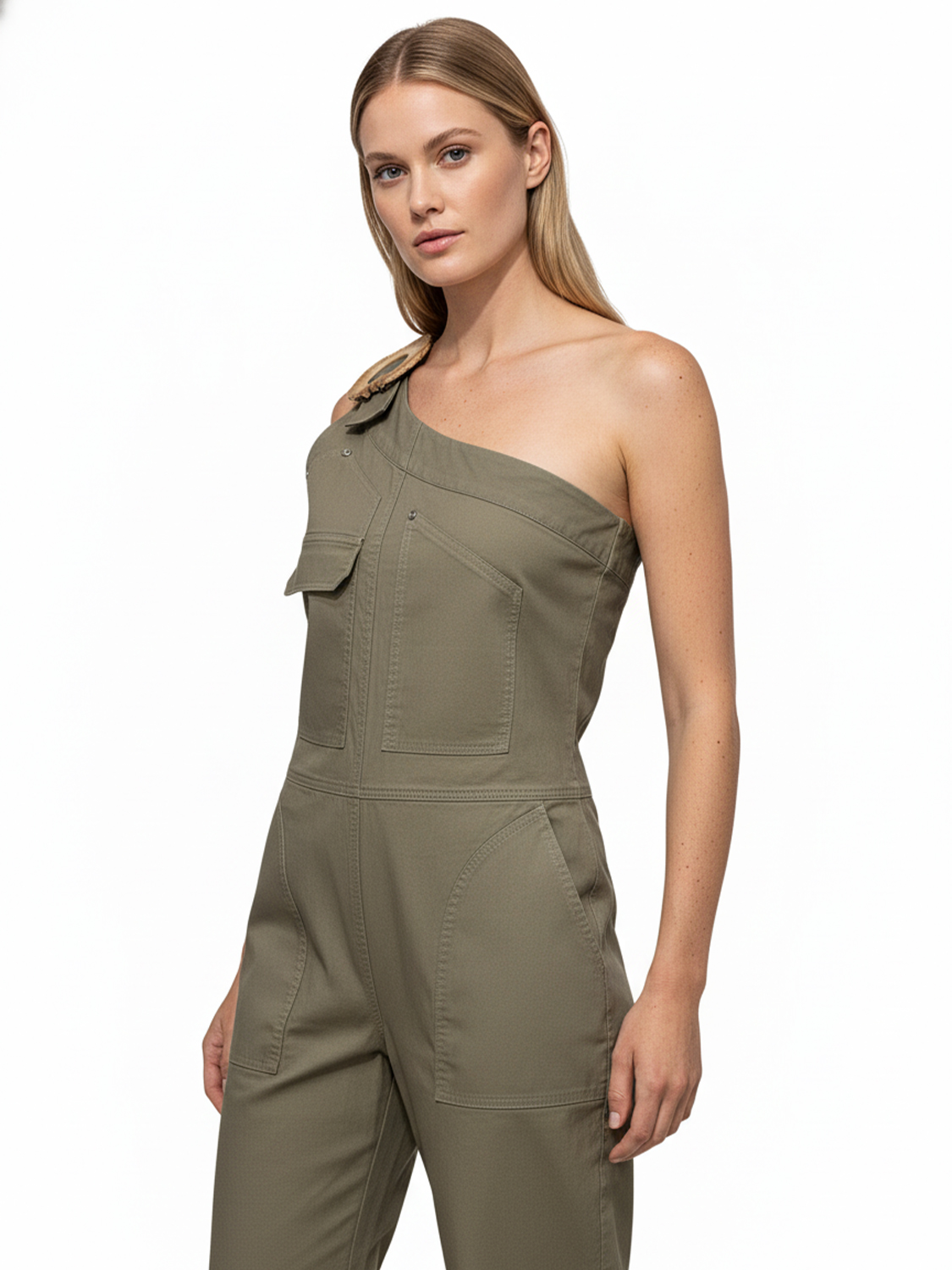 Haki Keten Karışımlı Oversize Tulum