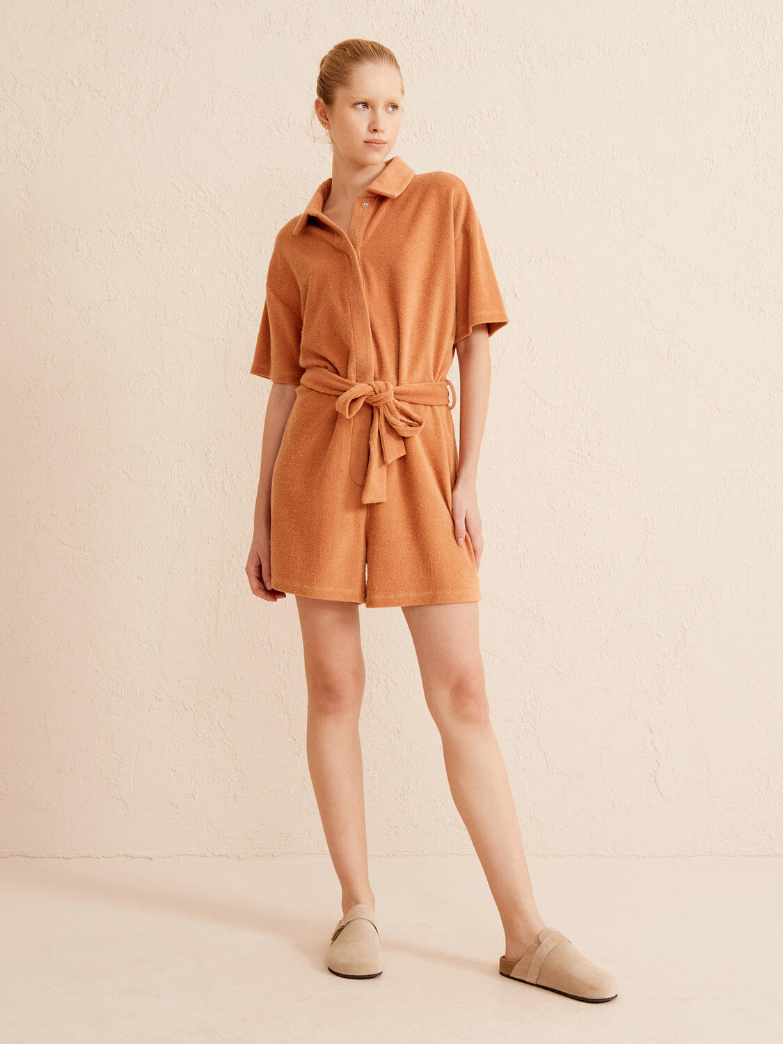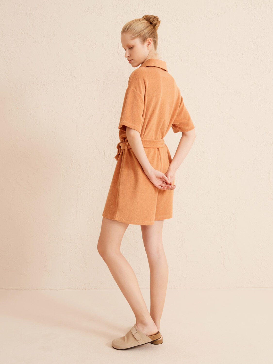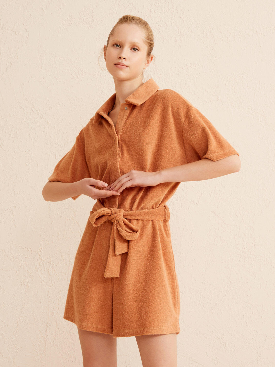 Kahverengi Regular Fit Pamuklu Havlu Tulum