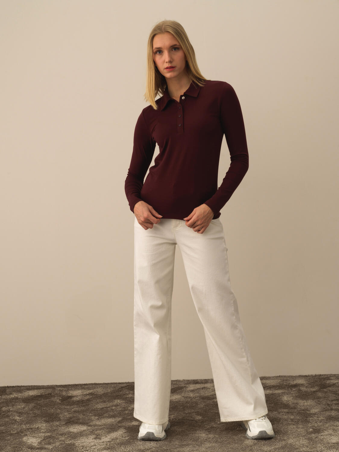 Ecru Soft Polar Fleece Slim Fit Long Sleeve T-Shirt - Xint