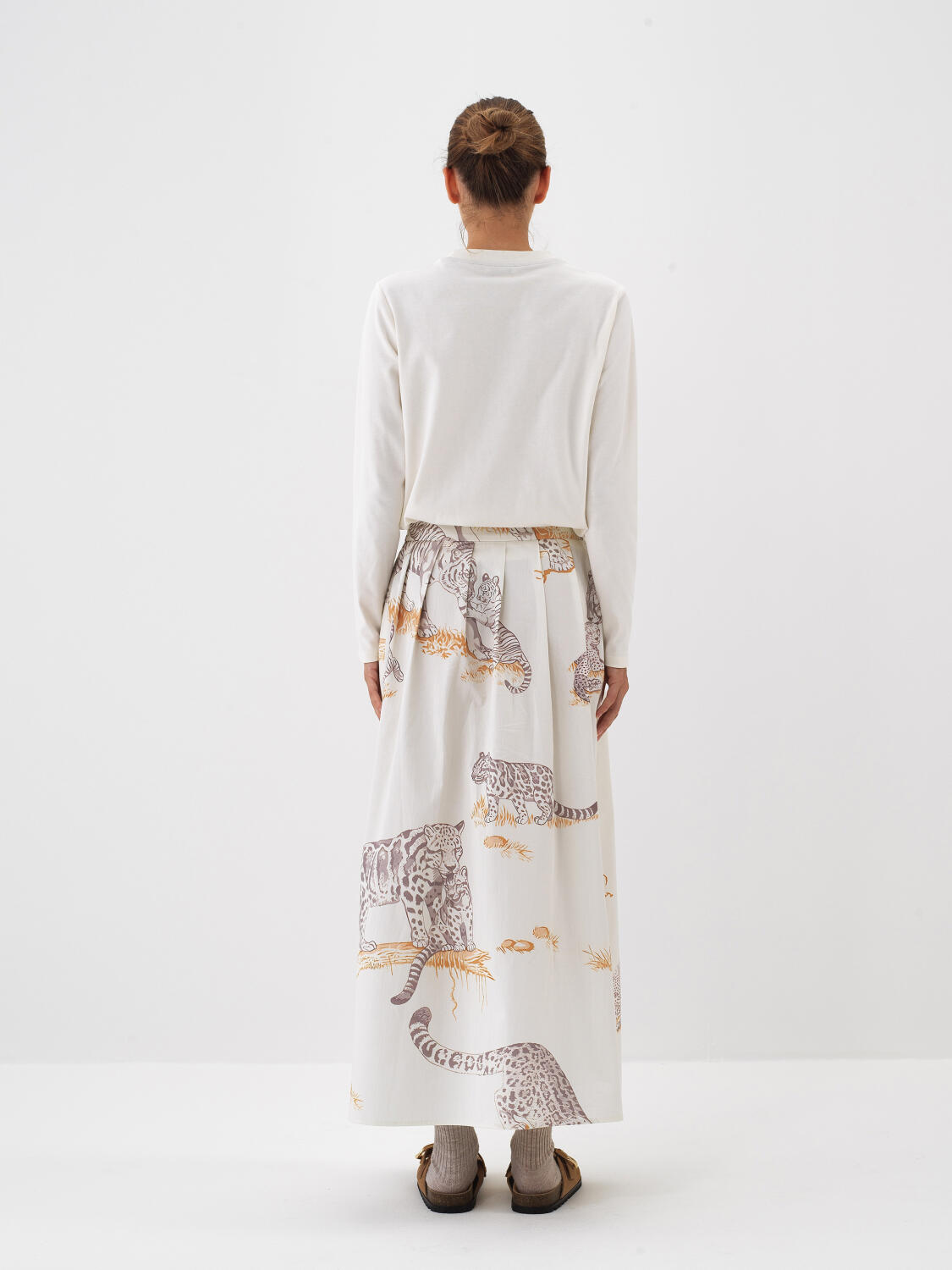 Ekru Pamuk Dokulu Oversize Uzun Kollu Tişört