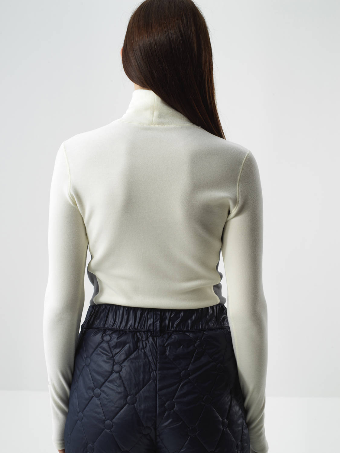 Ekru Yumuşak Polar Yüzeyli Slim Fit Uzun Kollu Tişört