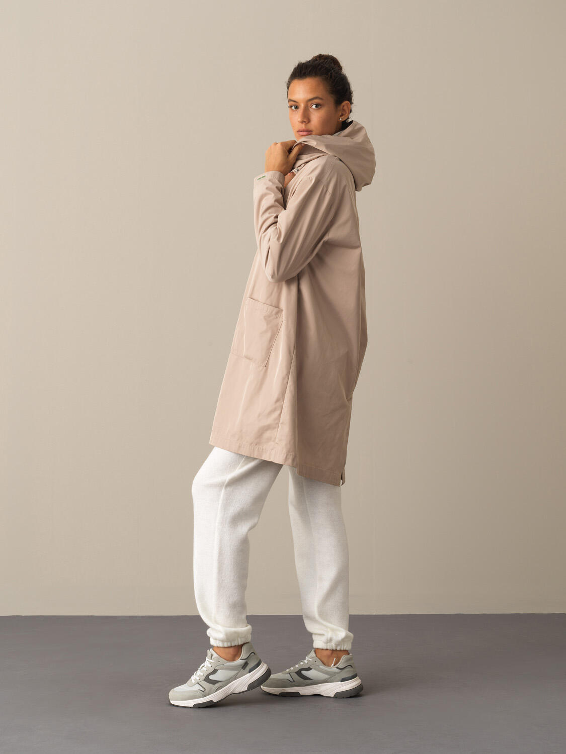 Bej Pamuk Dokulu Oversize Yağmurluk