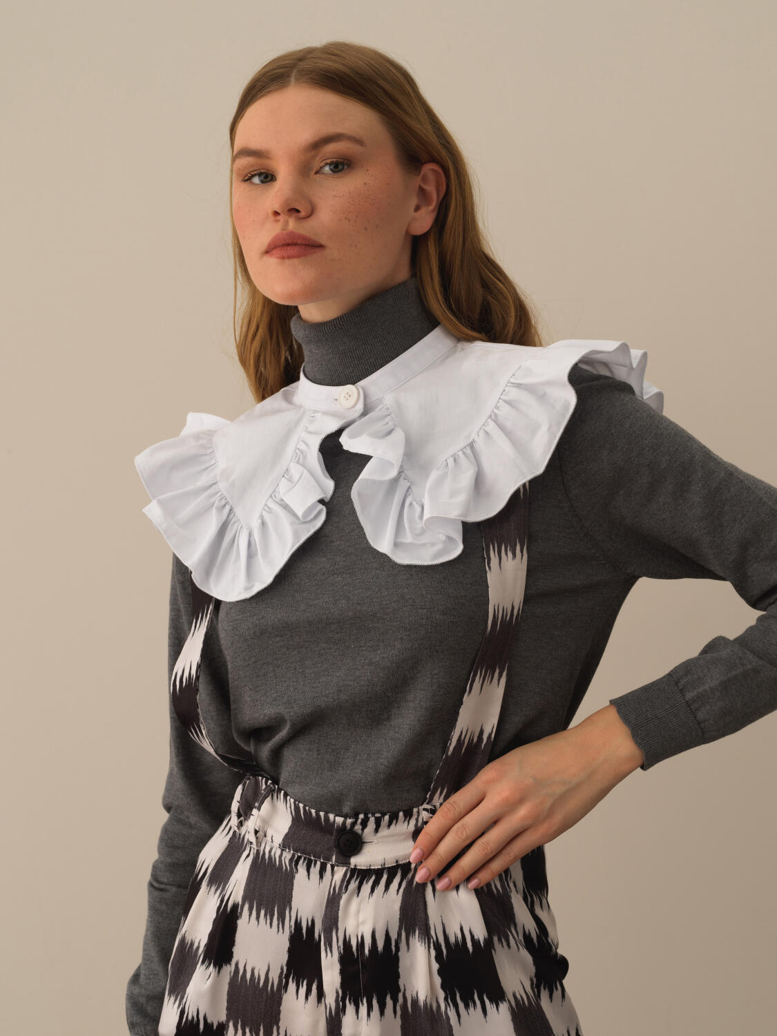 Kırık Beyaz Pamuk Dokulu Oversize Yakalık