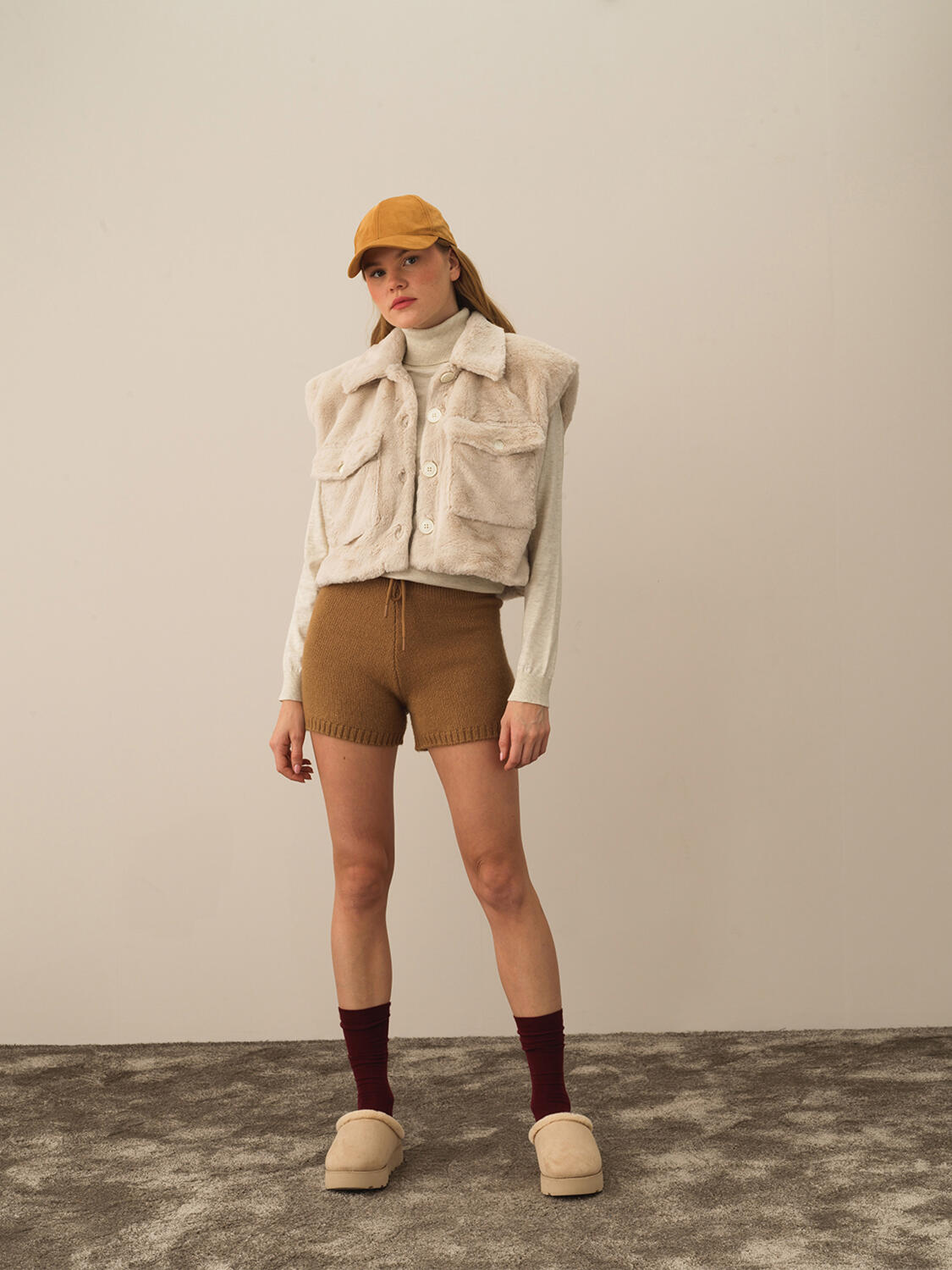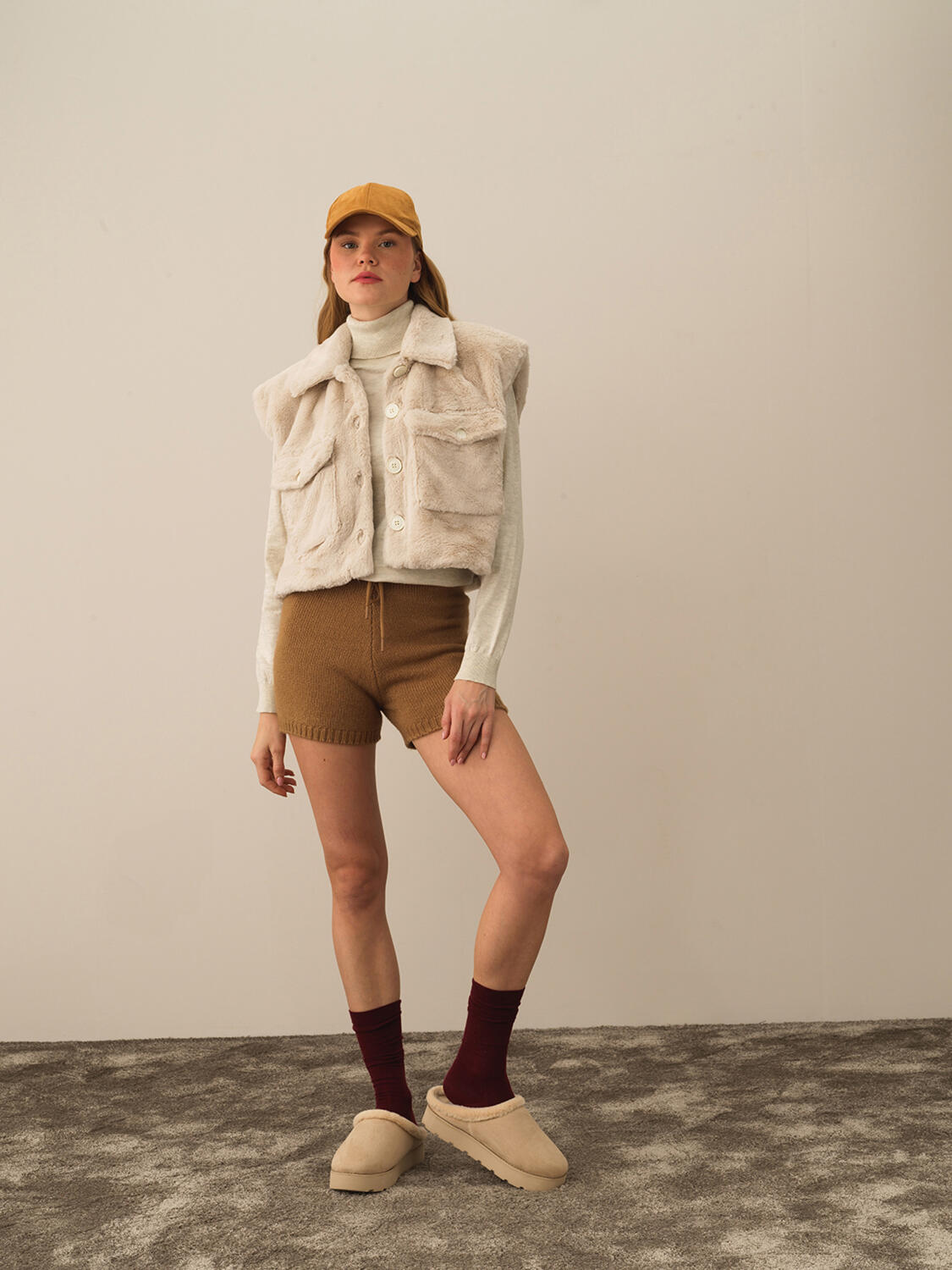 Ekru Doğal Yün Dokulu Regular Fit Yelek