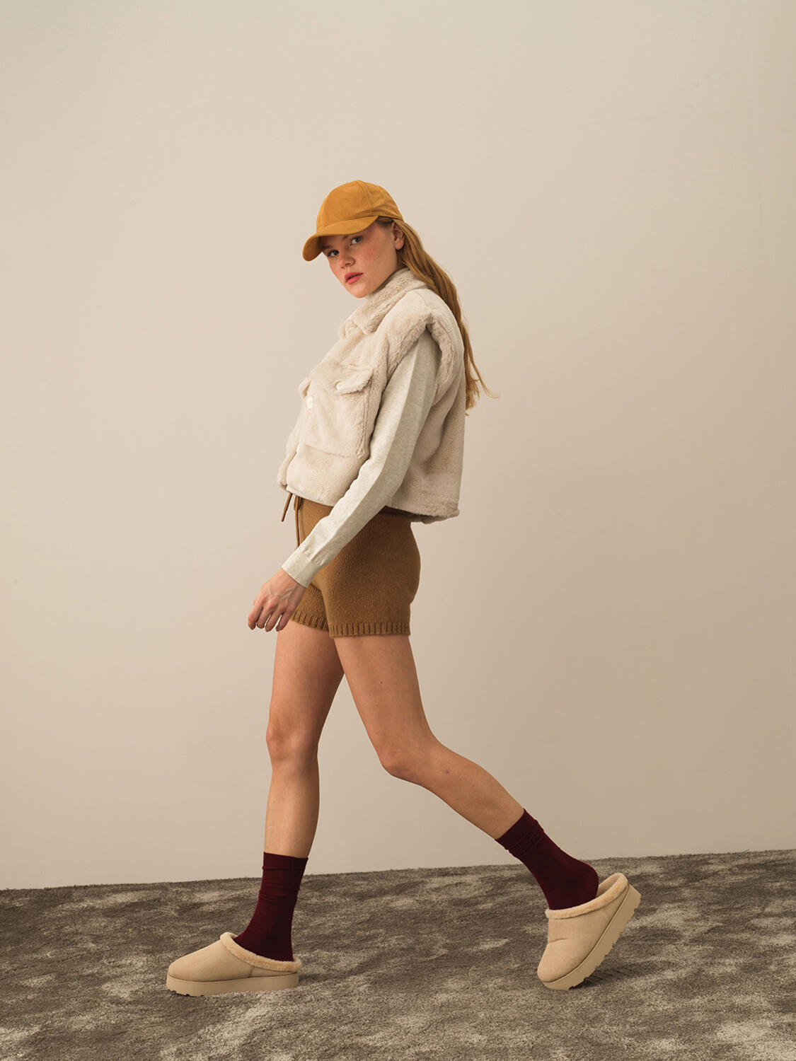 Ekru Işıltılı Lurex Detaylı Oversize Yelek - Xint