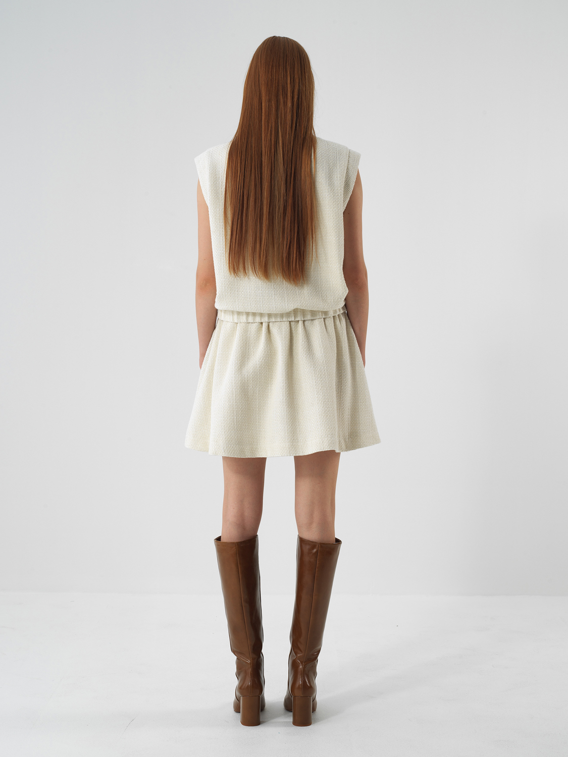 Ekru Işıltılı Lurex Detaylı Oversize Etek