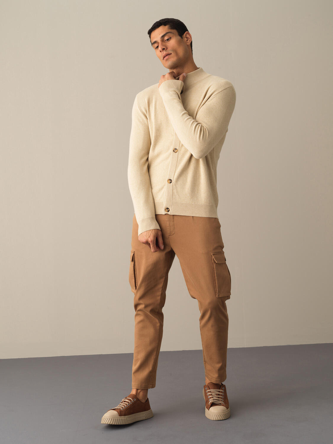 Ecru Regular Fit Cardigan That Maintains Its Form - Xint