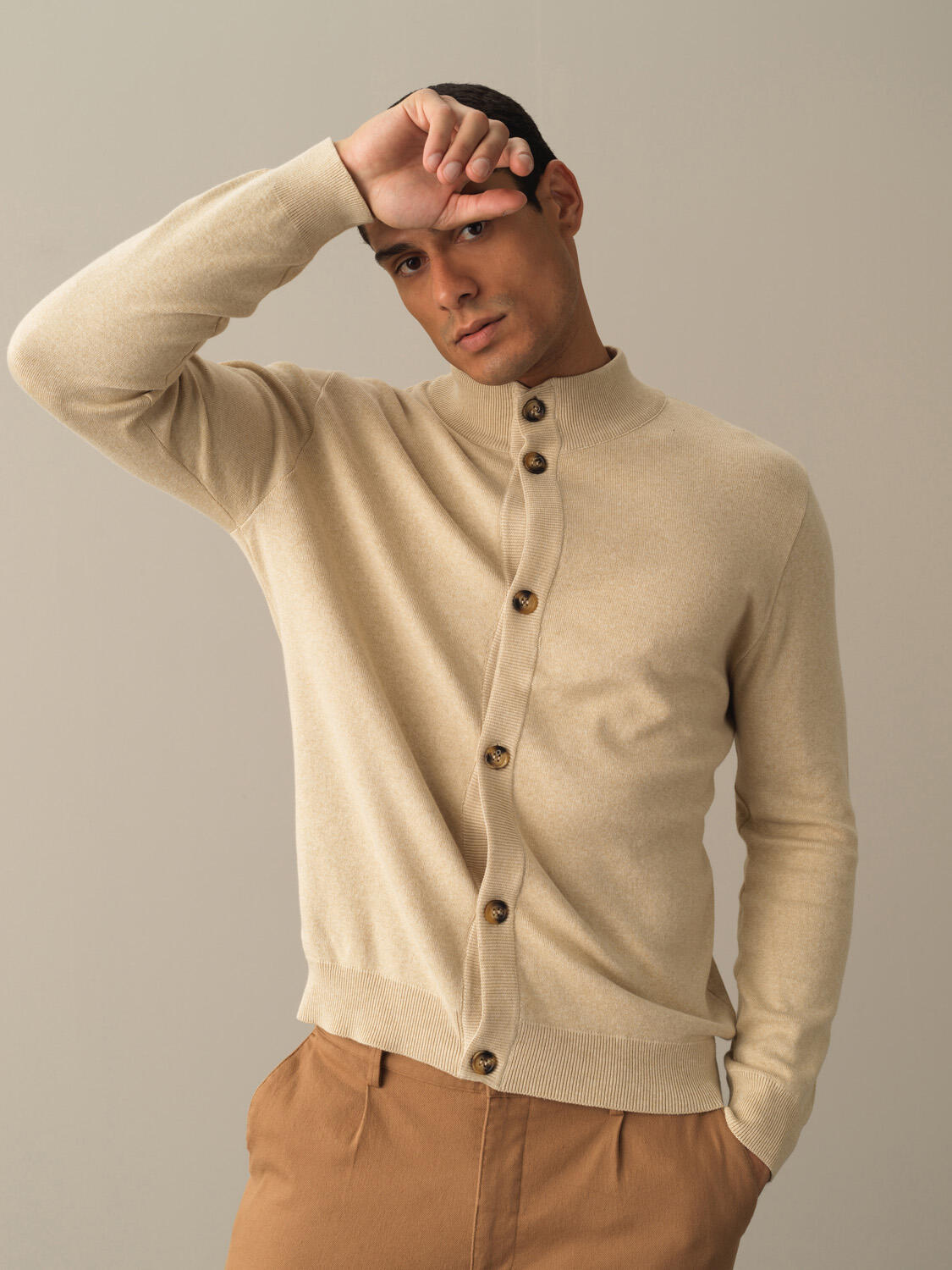 100% Cotton Regular Fit Buttoned Basic Cardigan - Xint