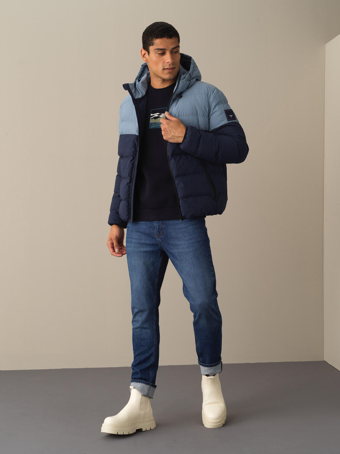 Navy Blue Flexible Textured Regular Fit Coat - Xint