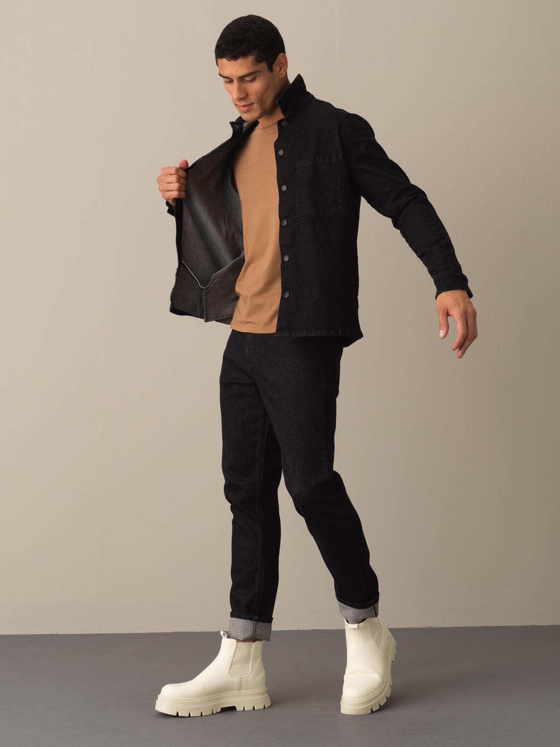Beige Flexible Textured Regular Fit Shirt Jacket