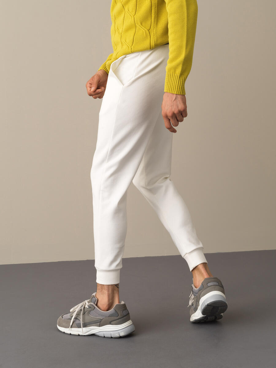 Ecru Flexible Textured Regular Fit Jogger Pants - Xint