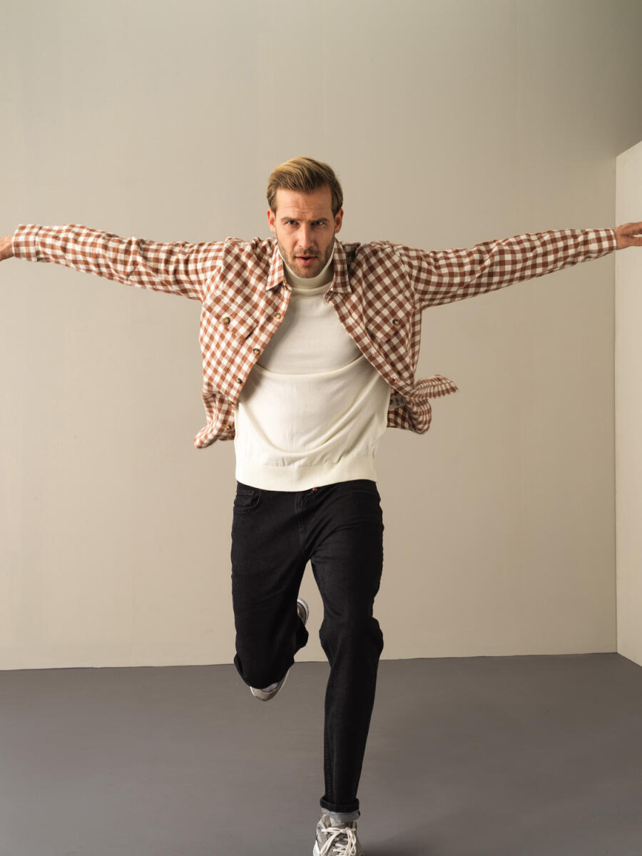 Model Dimensions: Height 190 cm / Chest 95 / Waist 79 / Hip 95 Size on Mannequin: 32/M