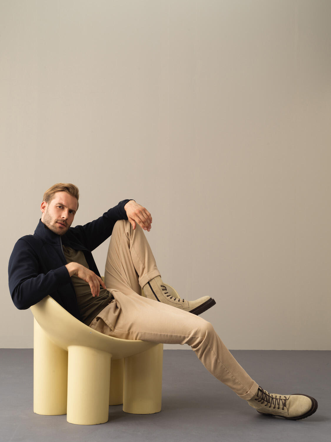 Model Dimensions: Height 190 cm / Chest 95 / Waist 79 / Hip 95 Size on Mannequin: 32/M
