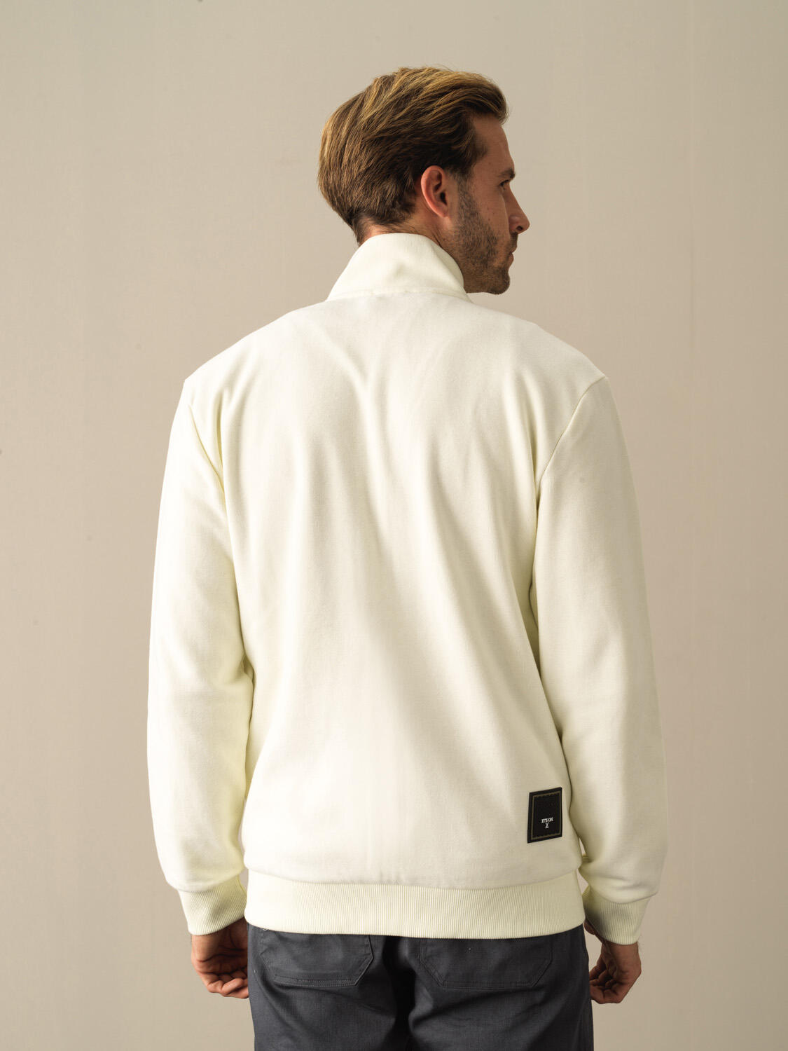 Ecru Cotton Textured Regular Fit Sweatpants - Xint