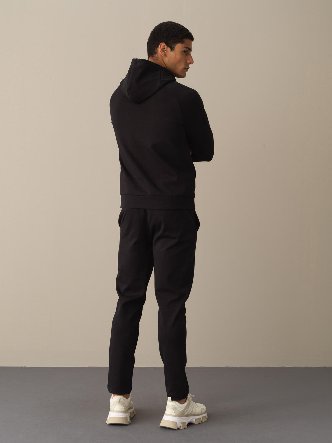 Black Cotton Textured Regular Fit Sweatpants - Xint