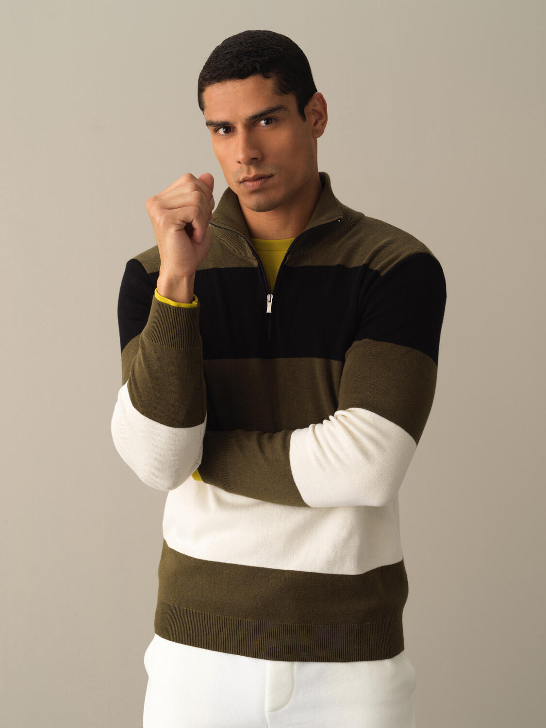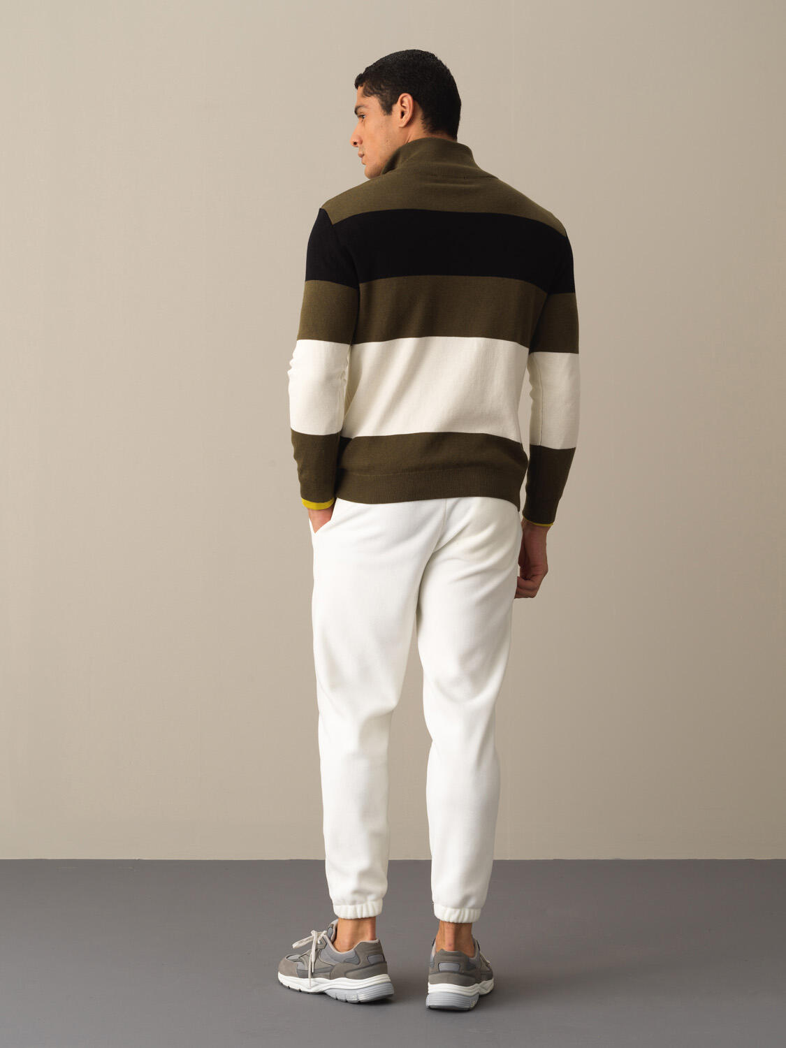 High Neck 100% Cotton Regular Fit Striped Sweatshirt