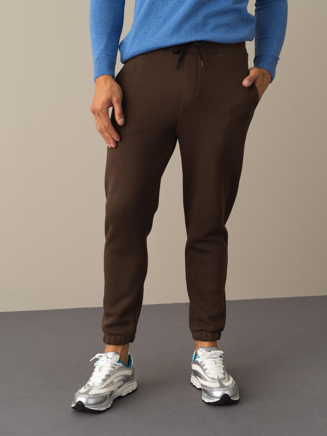 Beige Luxury Textured Soft Velvet Slim Fit Sweat Trousers - Xint